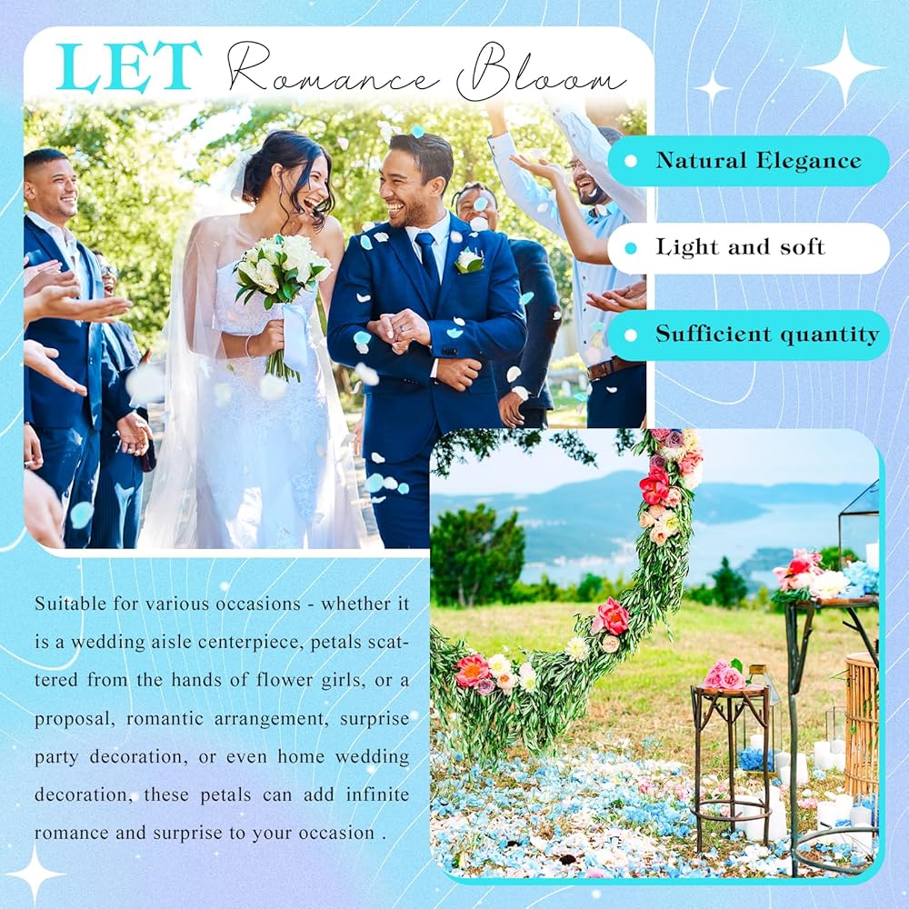 Suggestions for Use: Blue and ivory white flower confetti can not only be used alone, but also combined with other color petal packs to create a unique effect that matches personalized wedding decorations. They are non-toxic, odorless, and reusable, making them perfect for the layout needs of various important occasions.
