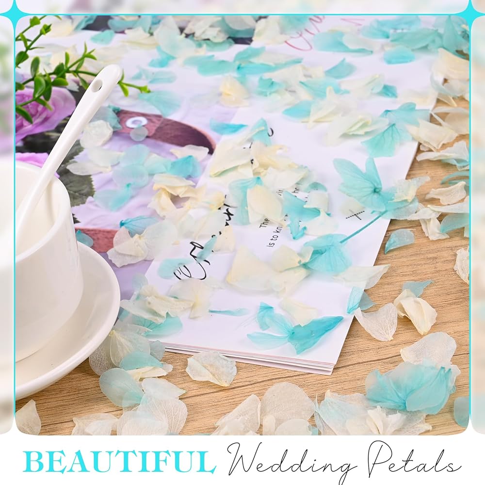VAIPI 2500 Pieces Hydrangea Flower Petals 1.76 oz Blue White Real Nature Dried Flower Petal for Weddings, Party Flower Confetti, Valentine's Day, Flower Girl Baskets, Romantic Night, Proposal Decor