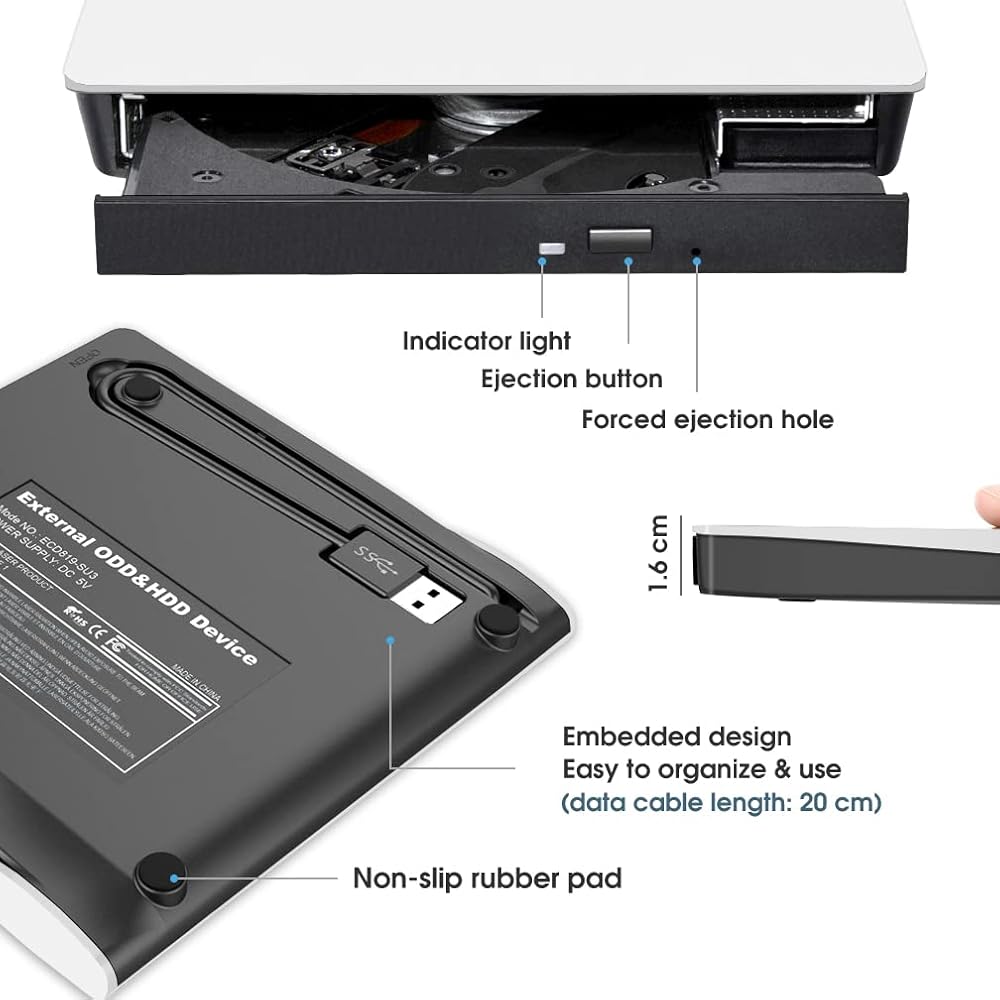 【Reliable Performance】With the Strong error-correcting, low impedance, and anti-interference ability, you can use this USB CD/DVD drive to read and write CDs and DVDs quietly without stuttering and noise, and won't damage your discs.