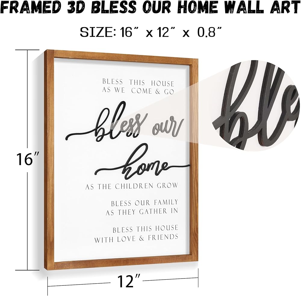 FRAMED PINE WOOD WALL ART: Liswit “Bless our home” wall decor sign is made out of pine wood. Keep this sign handy to remind you to look for the positive in each and every day