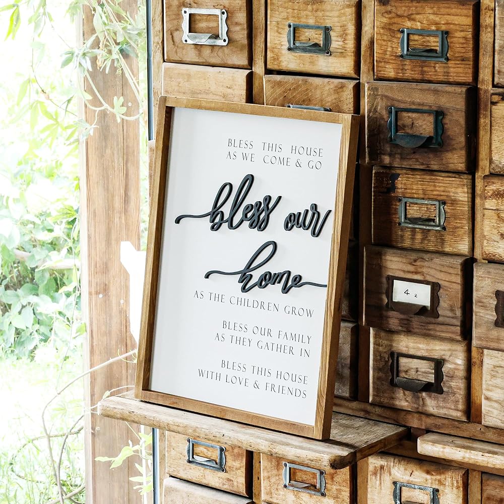Liswit Farmhouse Decor Bless Our Home Wooden Sign Wall Art for Rustic Home Kitchen Bedroom Bathroom Living Room Wall Decor
