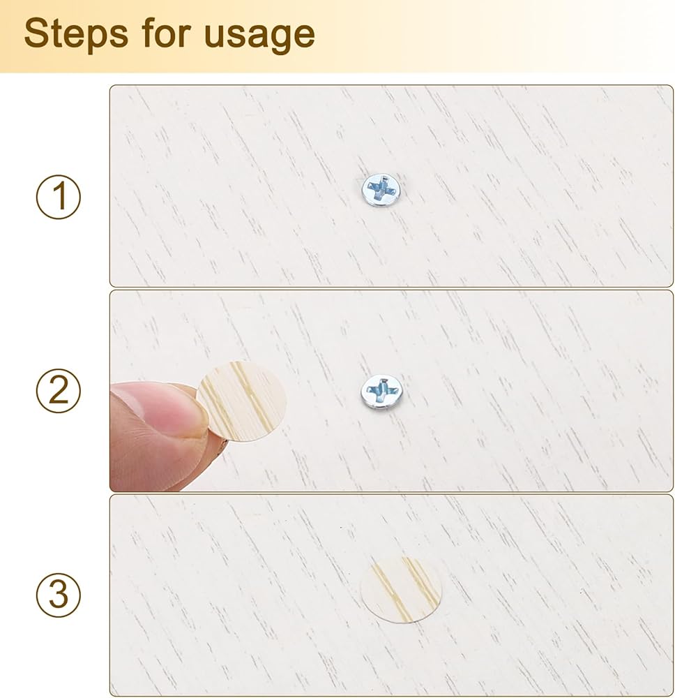 [Easy to Use] - The screw hole cover stickers are very easy to use. Before pasting, wipe the area to be pasted clean and keep it dry, then peel off the stickers from the backing sheet, and finally paste them on the screw holes.