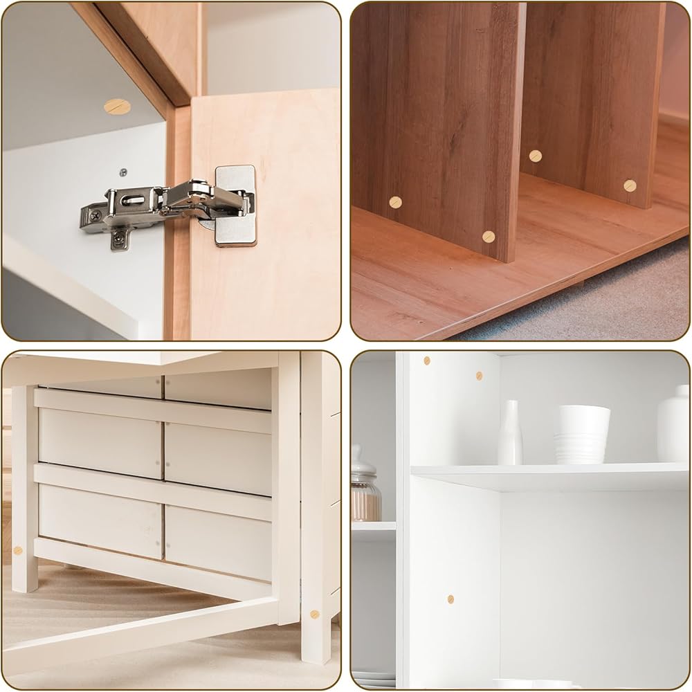 [Wide Application] - It can be widely used to cover the screw holes and mounting holes of various wooden or metal furniture, such as cabinets, shelves, tables, chairs, wardrobes, closets, etc. It can not only effectively protect the screws, but also make the furniture look beautiful.