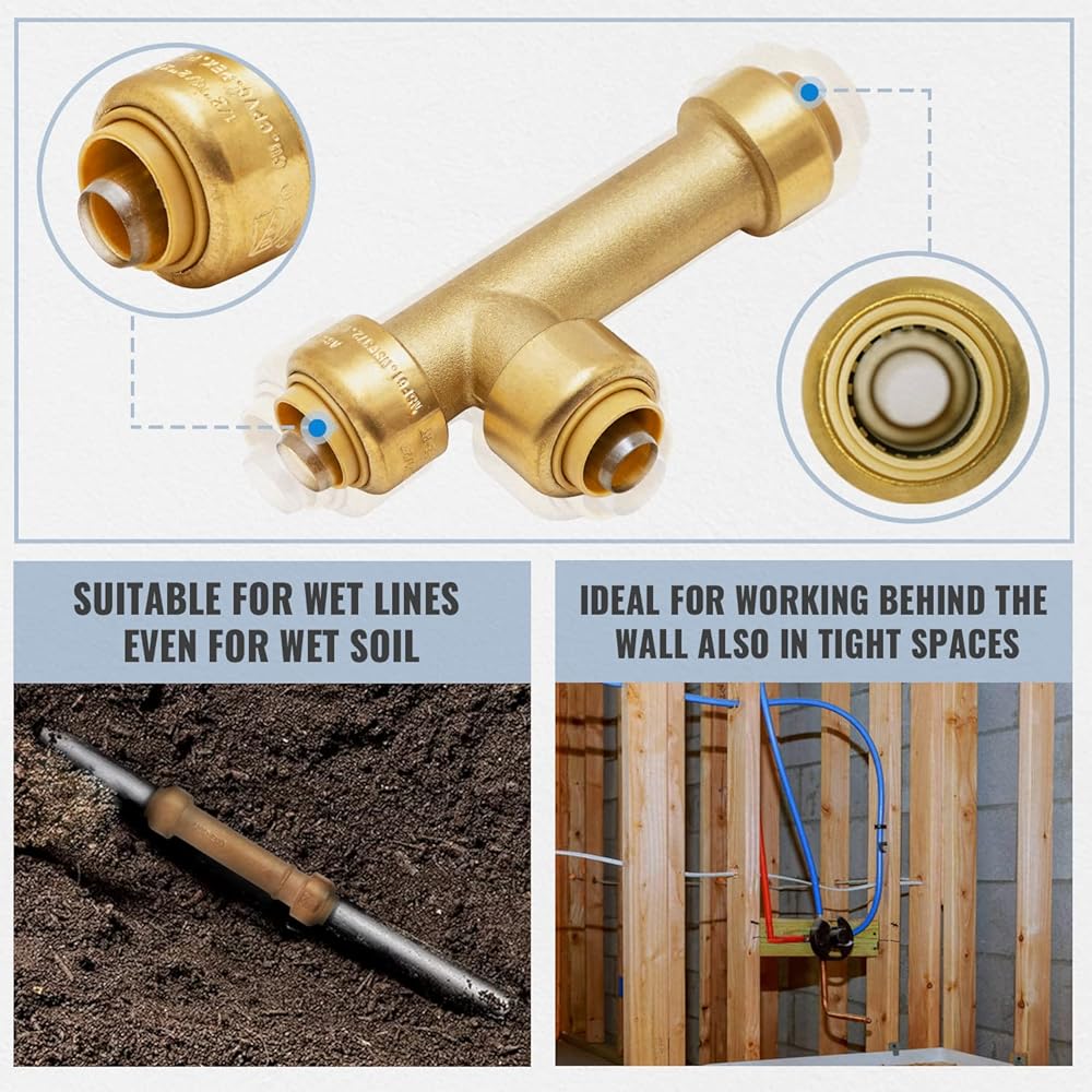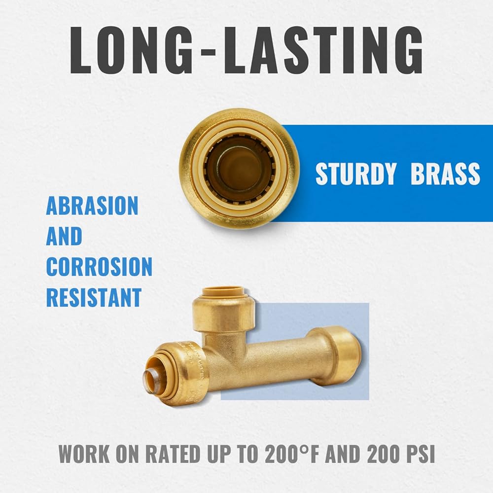 【EASY INSTALLATION】: Complete installs faster and safer than traditional methods with brass push-to-connect fittings and ease of use reduces installation errors as they completely eliminates the need to solder, crimp, glue, thread or fabricate in any forms; Just push and lock the pipe to get the seamless performance.