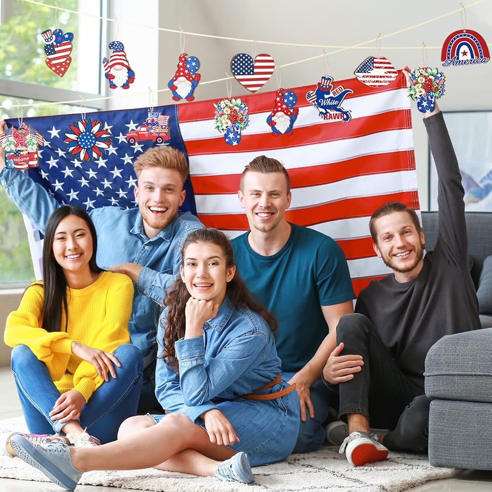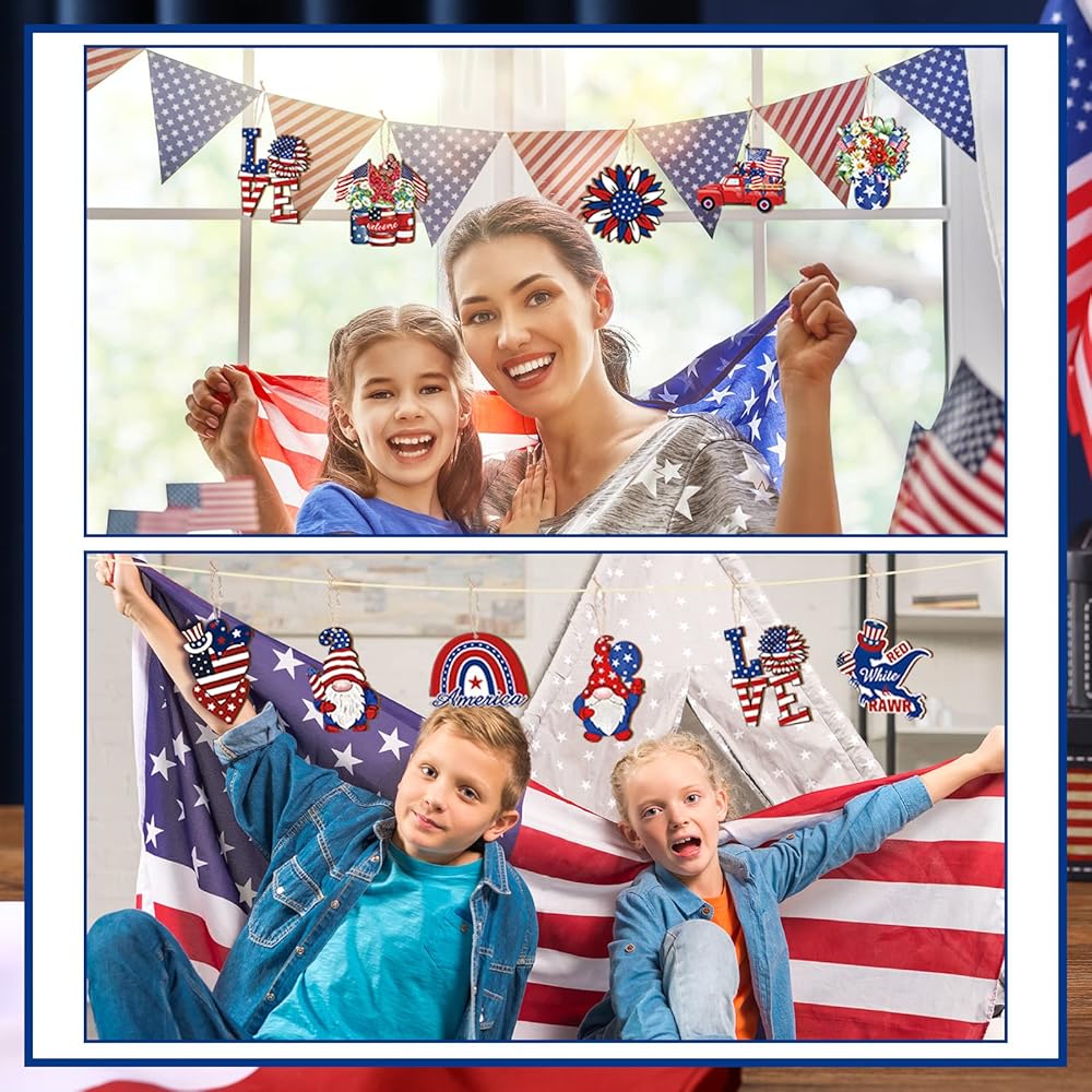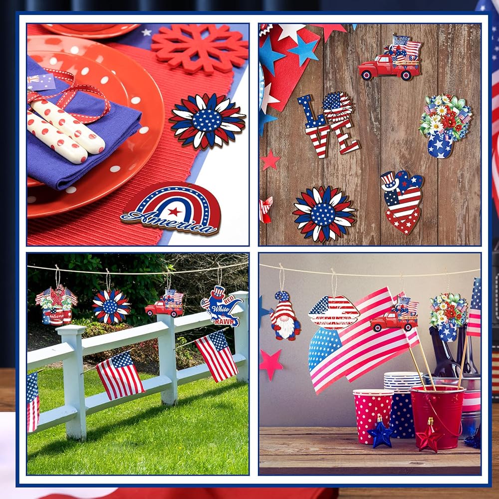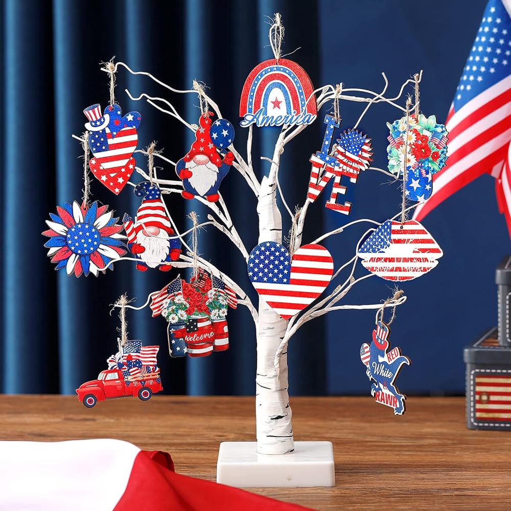 Sintuff 36 Pcs 4th of July Ornaments for Tree Patriotic Wood Independence Day Ornaments Red White Blue Party Hanging Decoration Artifact for Small Tree 250th Anniversary Party Supplies