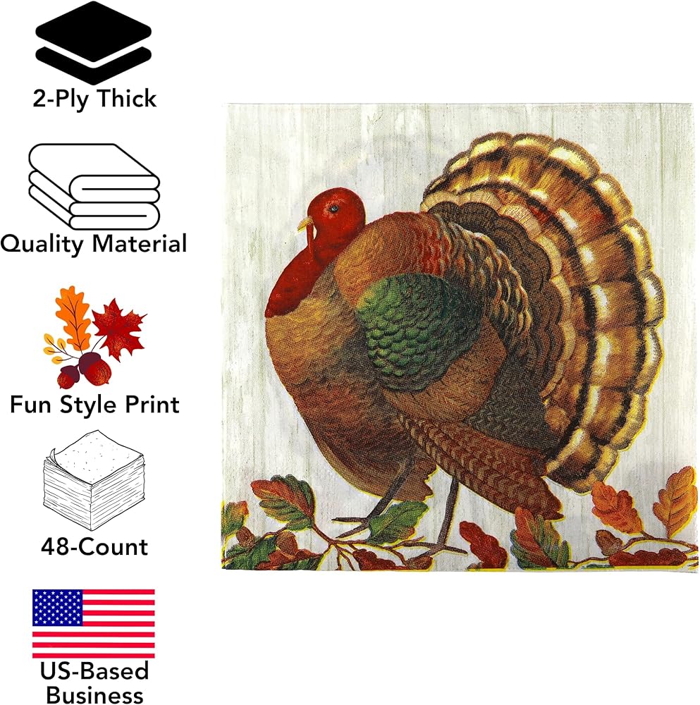 Iconikal 75-Pack 2-Ply Disposable Thanksgiving Napkins - Harvest Turkey Design, Autumn Fall Party Supplies, Durable Dinner Size 6.5" x 6.5"