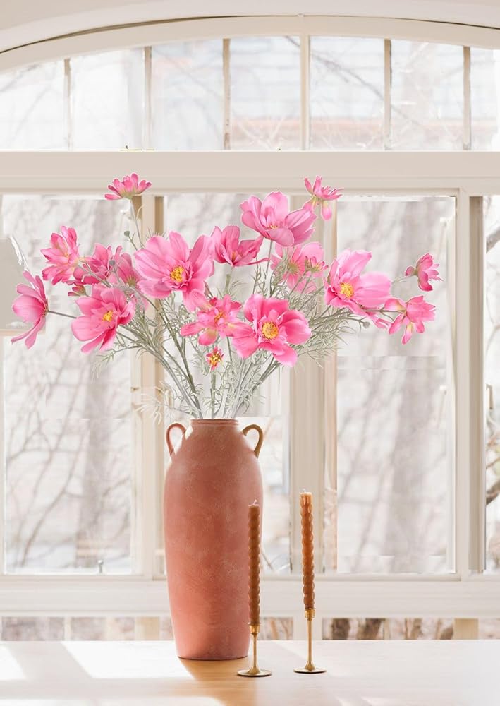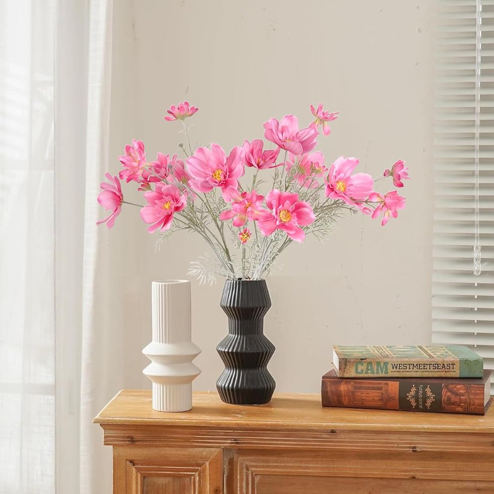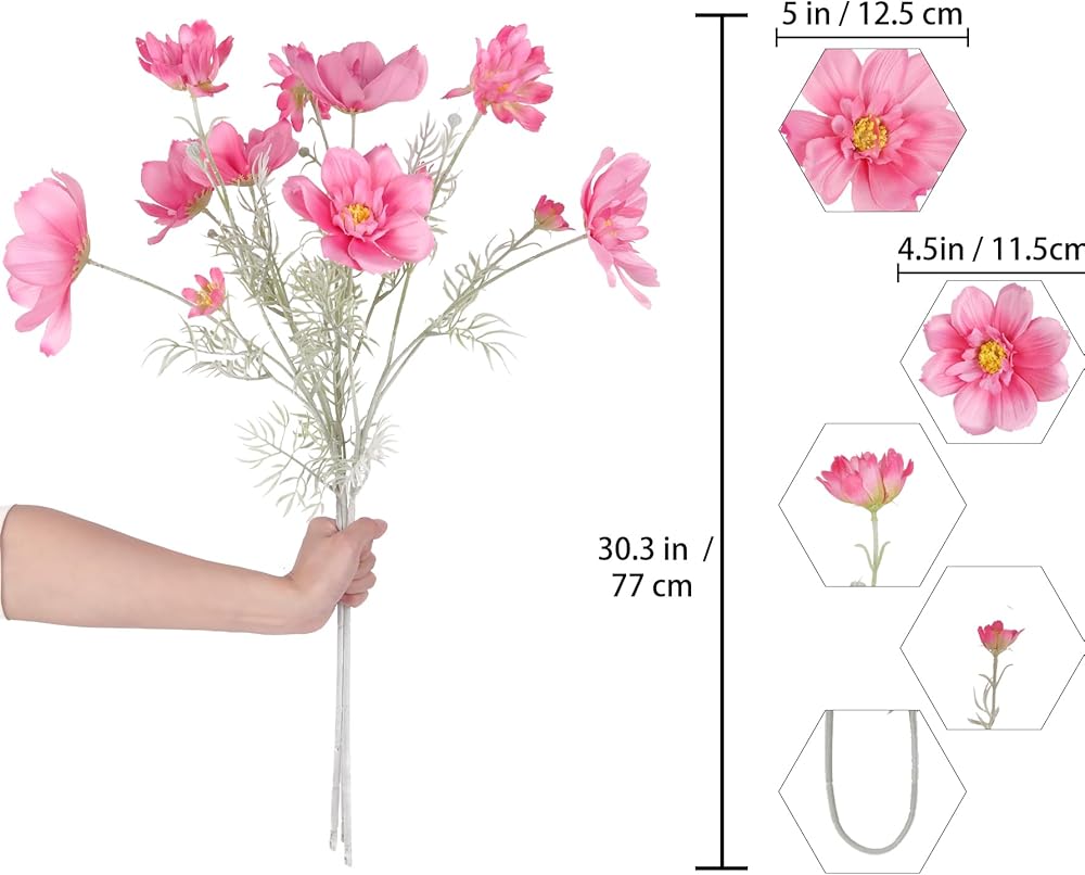 These life-like cosmos artificial flowers can be reused. It won't wilt or fade, nor will they require any maintenance and can keep the shape of brightly colored flowers blooming for a long time.