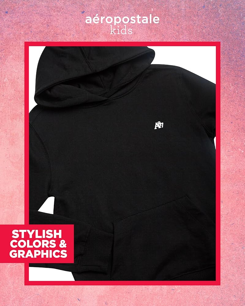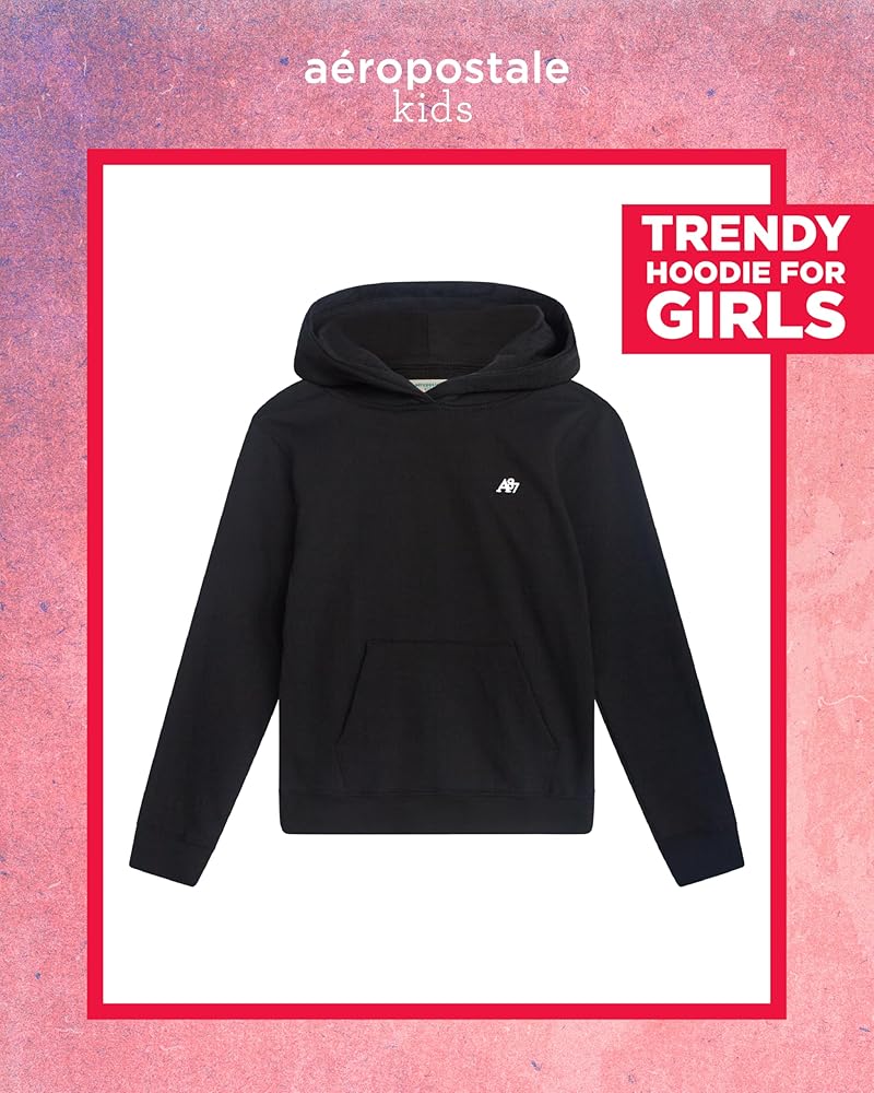 LIGHTWEIGHT AND COZY: Keep her warm and stylish with the AEROPOSTALE Girls' Sweatshirt, a fleece pullover hoodie designed for comfort and versatility. Crafted from soft fleece fabric, this hoodie provides warmth without adding bulk, making it perfect for layering during transitional weather or cooler evenings.