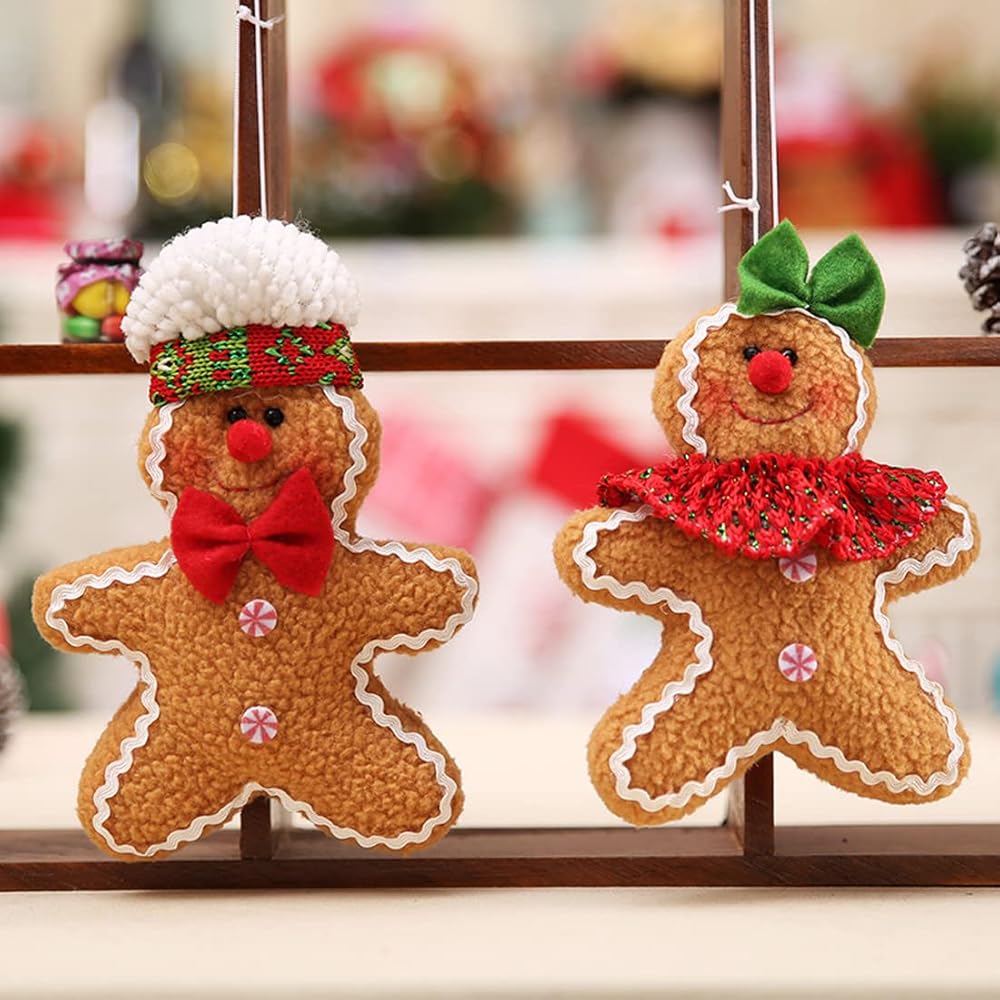 • 【Exquisite Workmanship】Made of high-quality plush and filled with soft fillers, the little gingerbread couples are flexible and bendy, and won't be broken if they fall or get into toddler's hands, perfect for personalizing your Christmas decoration.