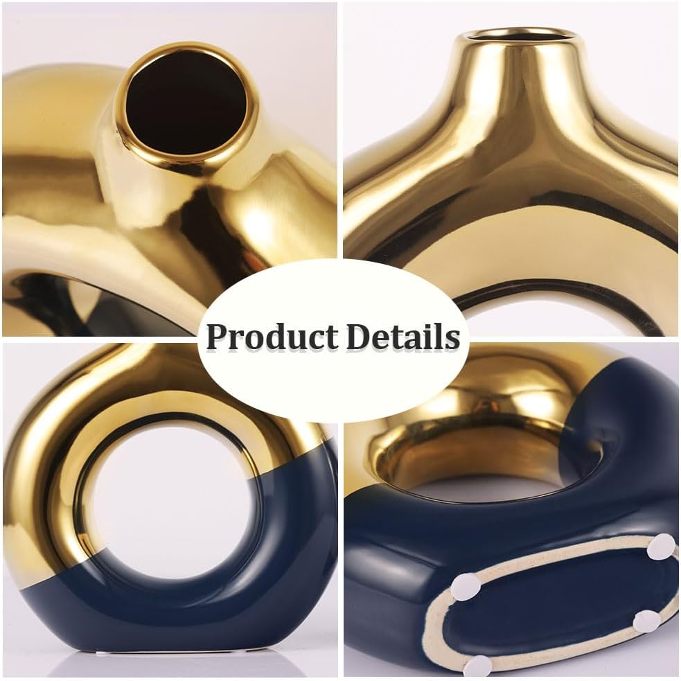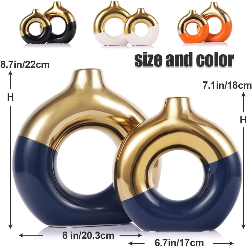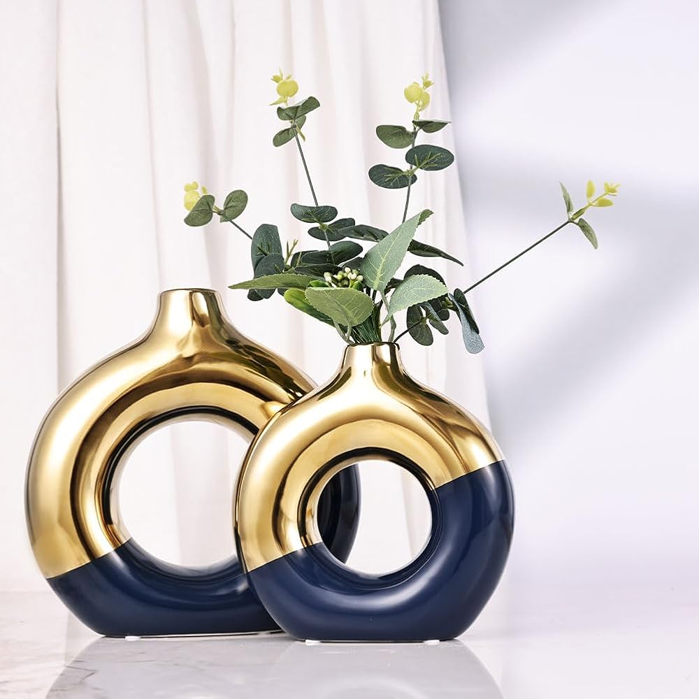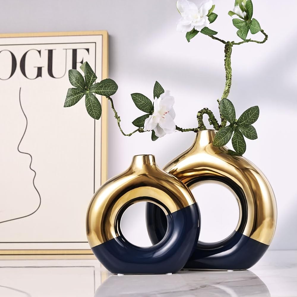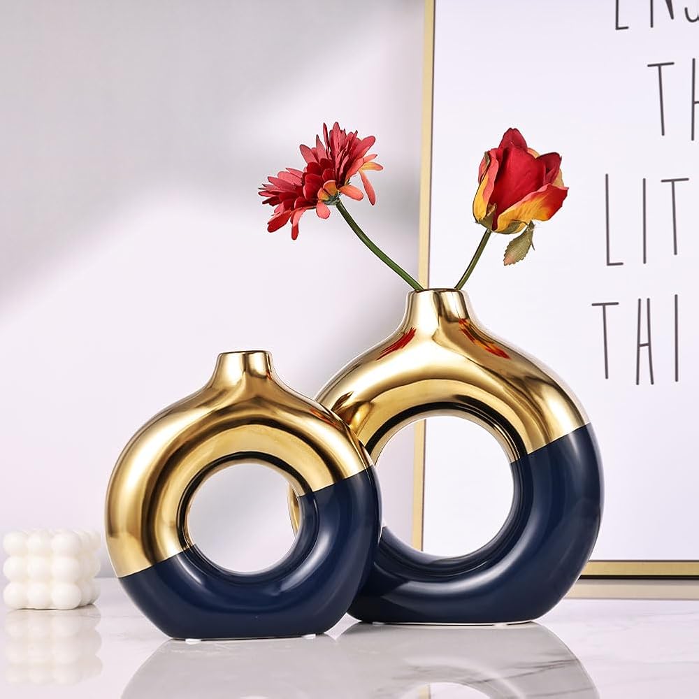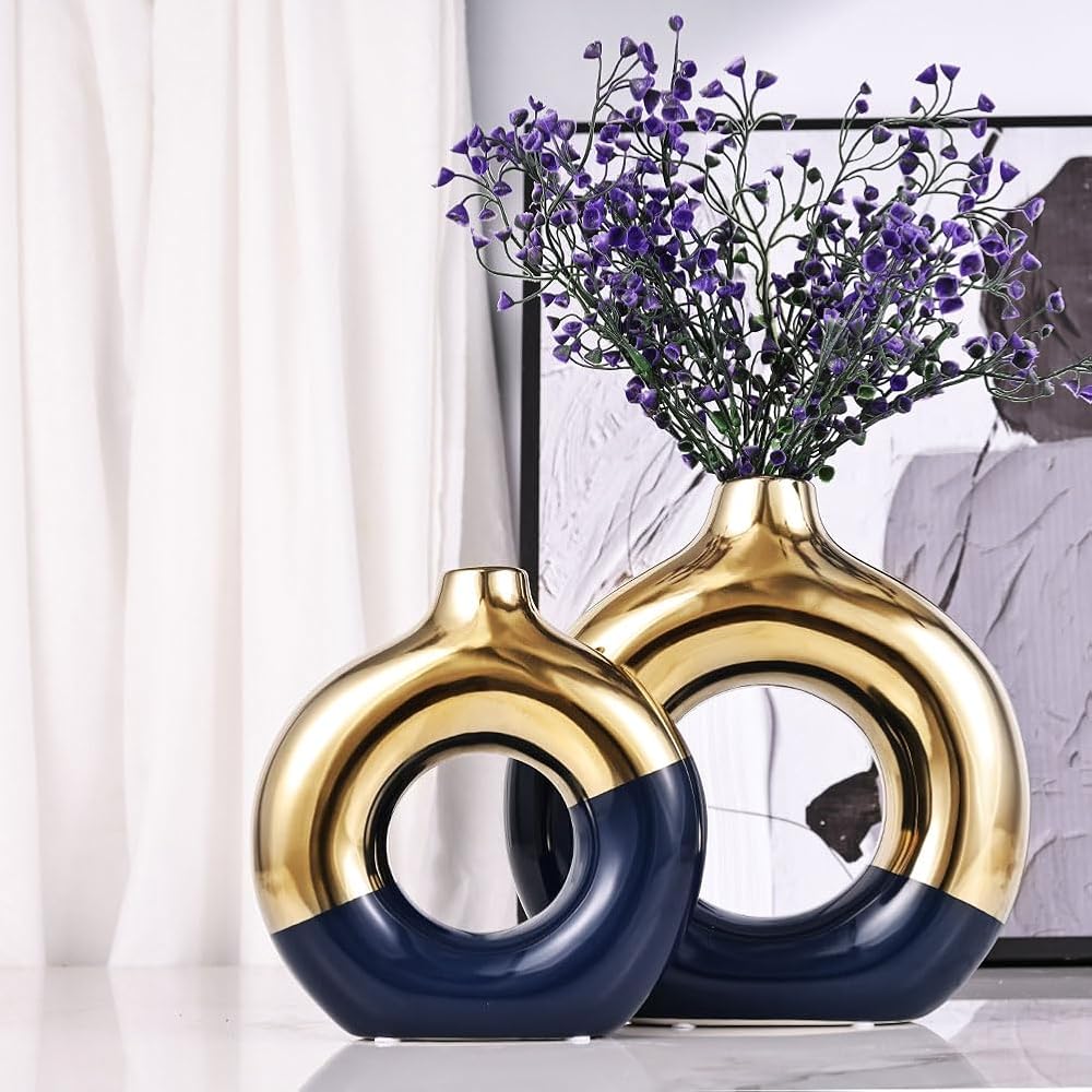 Delve into a Symphony of Color & Craftsmanship with Our Blue-Gold Ceramic Vases