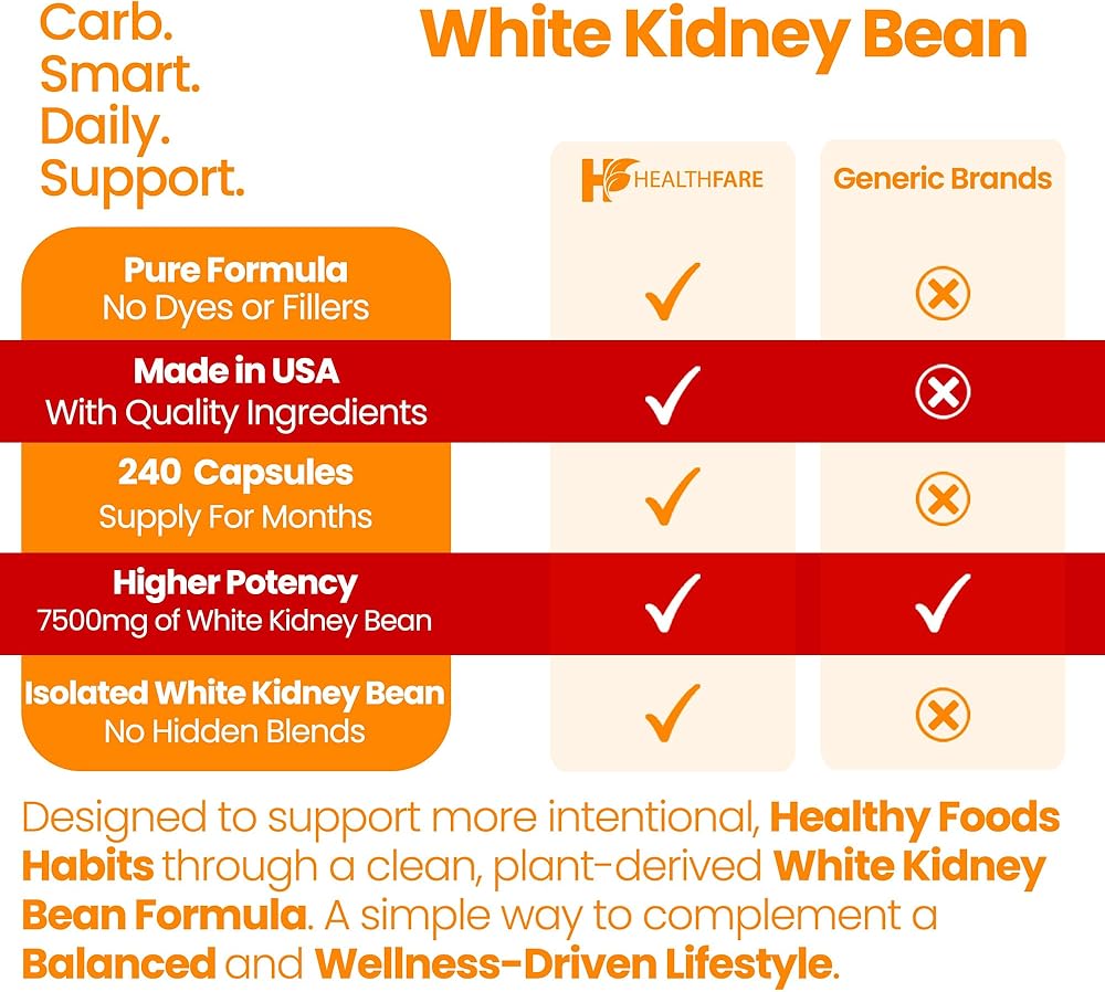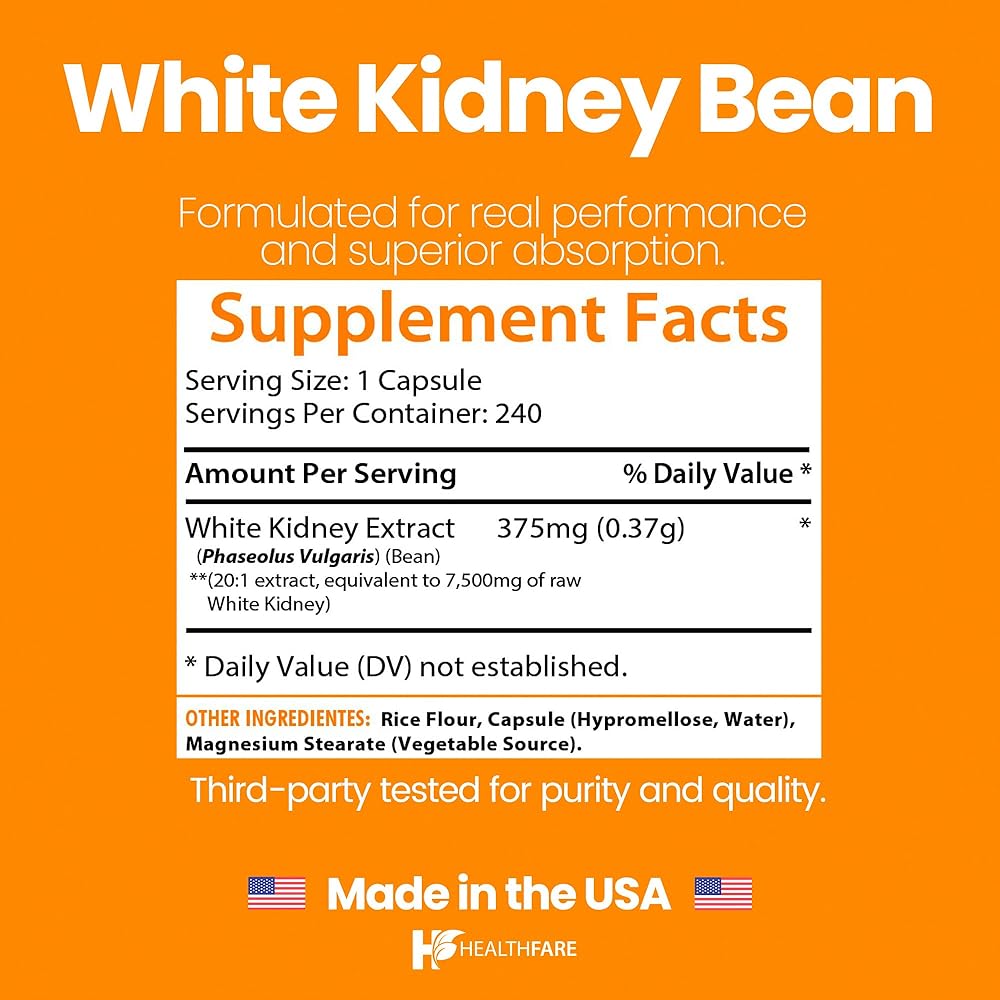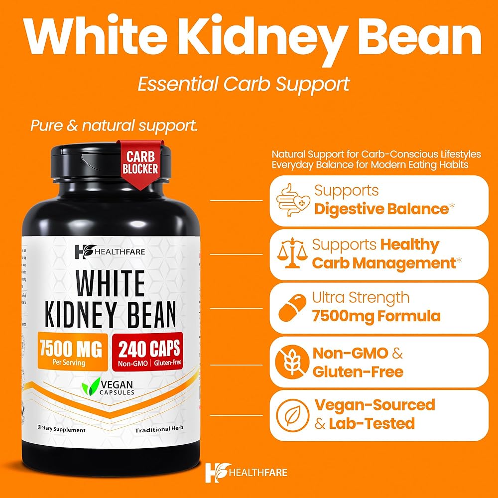 Healthfare White Kidney Bean Extract 7500mg | 240 Vegan Capsules | Extra Strength Concentrated Formula | Herbal Supplement for Carb & Digestion Support | Non-GMO, Gluten-Free | Made in USA