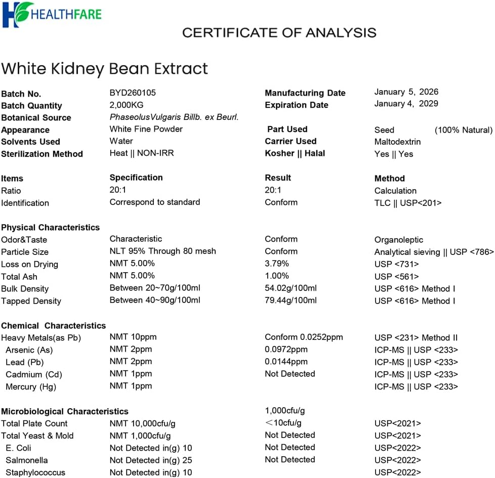HEALTHY GLUCOSE METABOLISM: White Kidney Bean extract is rich in protein, fiber, and slow-release carbs, making them effective at maintaining healthy blood glucose levels. With a low GI score, the blood glucose spike after consuming white kidney beans, or white kidney bean extract, is lower and more gradual than with other foods