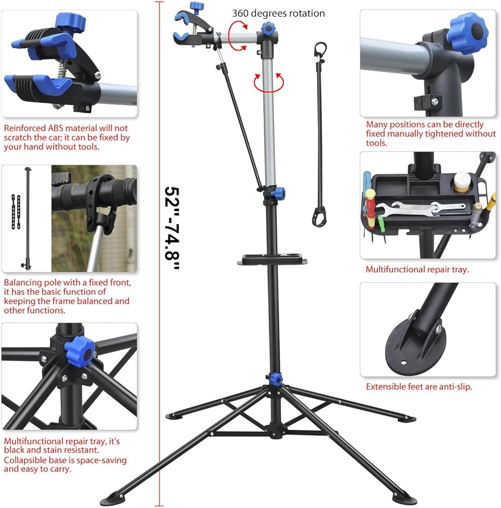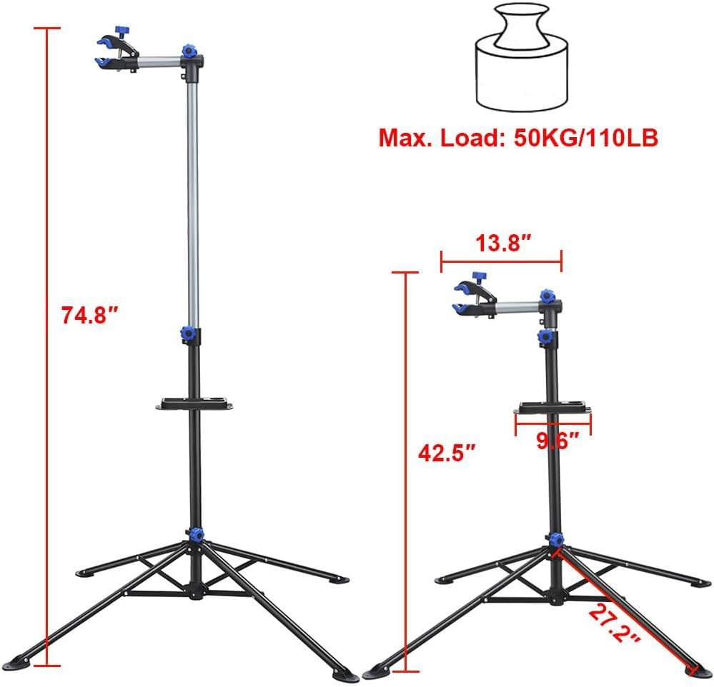 Frame Size: The telescopic bracket can be adjusted from 42. 5" to 74. 8" so you can work on all parts without bending your waist; adjustable clips are suitable for bicycle tubes of different diameters, suitable for 1" -1. 6" (25-40 mm) diameter frame tube.