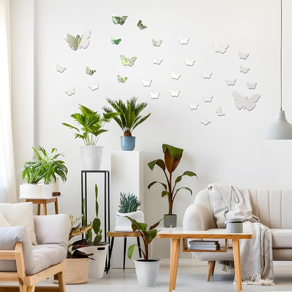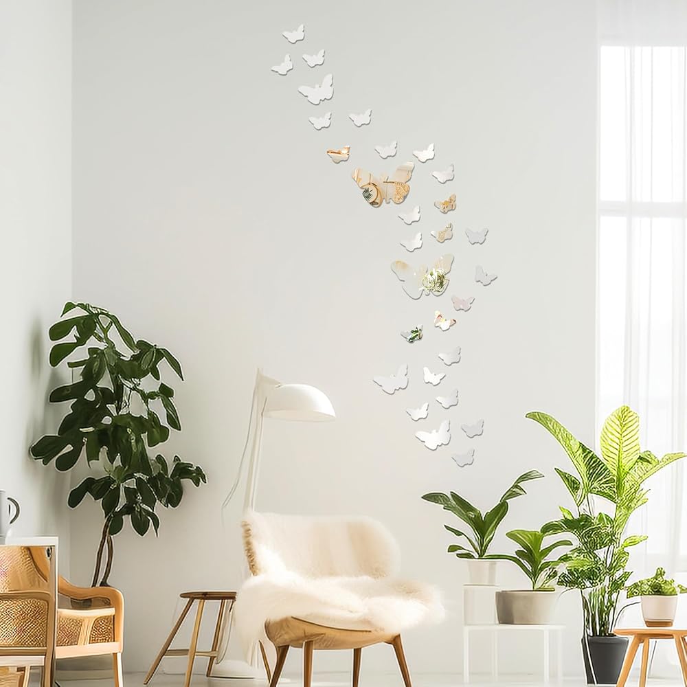 CEYAZYE Wall Mirror Tiles, 35pcs Butterfly Shape Mirrors for Wall, Self Adhesive Wall Mirror Stickers, Acrylic Mirror Cute Room Wall Decor Y2k Aesthetic Living Room Bedroom Decor(Silver)