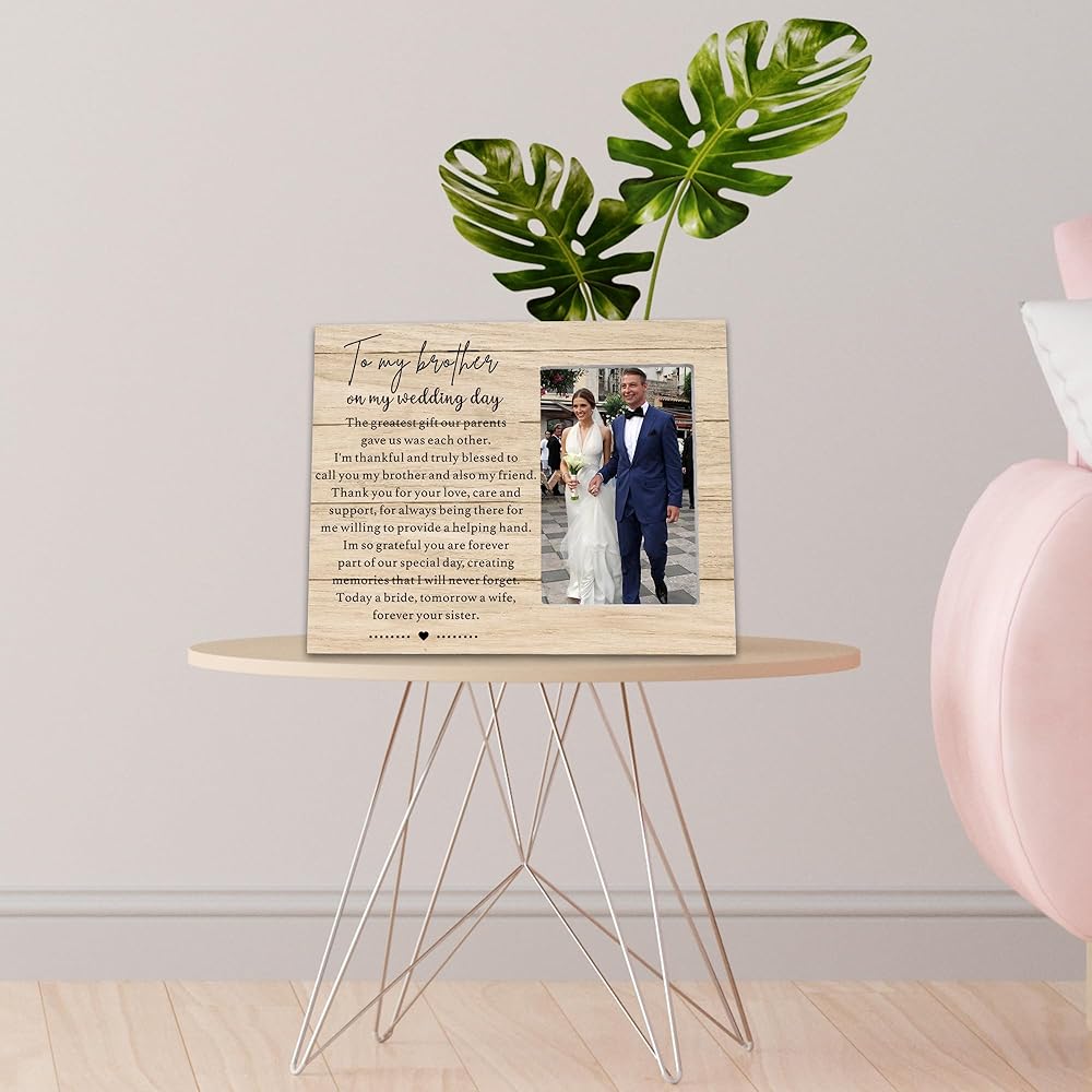 This Natural Wood Picture Frame is a gift for the father of the groom or mother of the groom from their daughter or son on their Wedding Day. A Perfect Gift to display a favorite picture of you and your mother or you and your father on your wedding day.