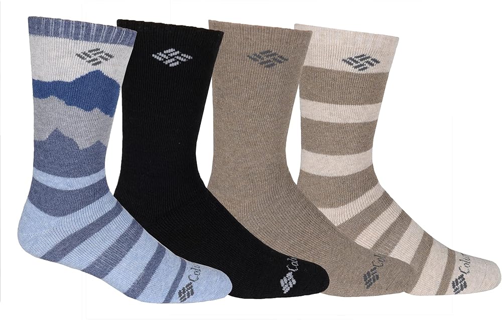 Columbia Wool Mountain View Crew Socks 4 Pair, Assorted, One Size