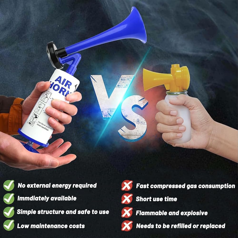 High Quality: The handheld air pump horn is crafted with high-quality aluminum and ABS materials, ensuring sturdiness, rust-resistance, and long-lasting durability.