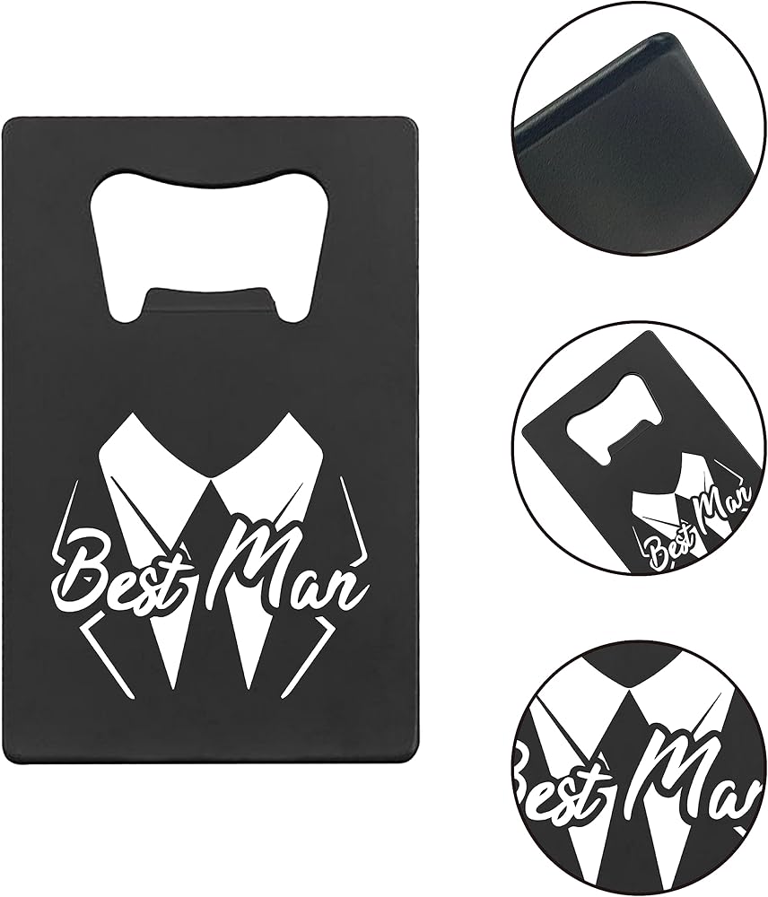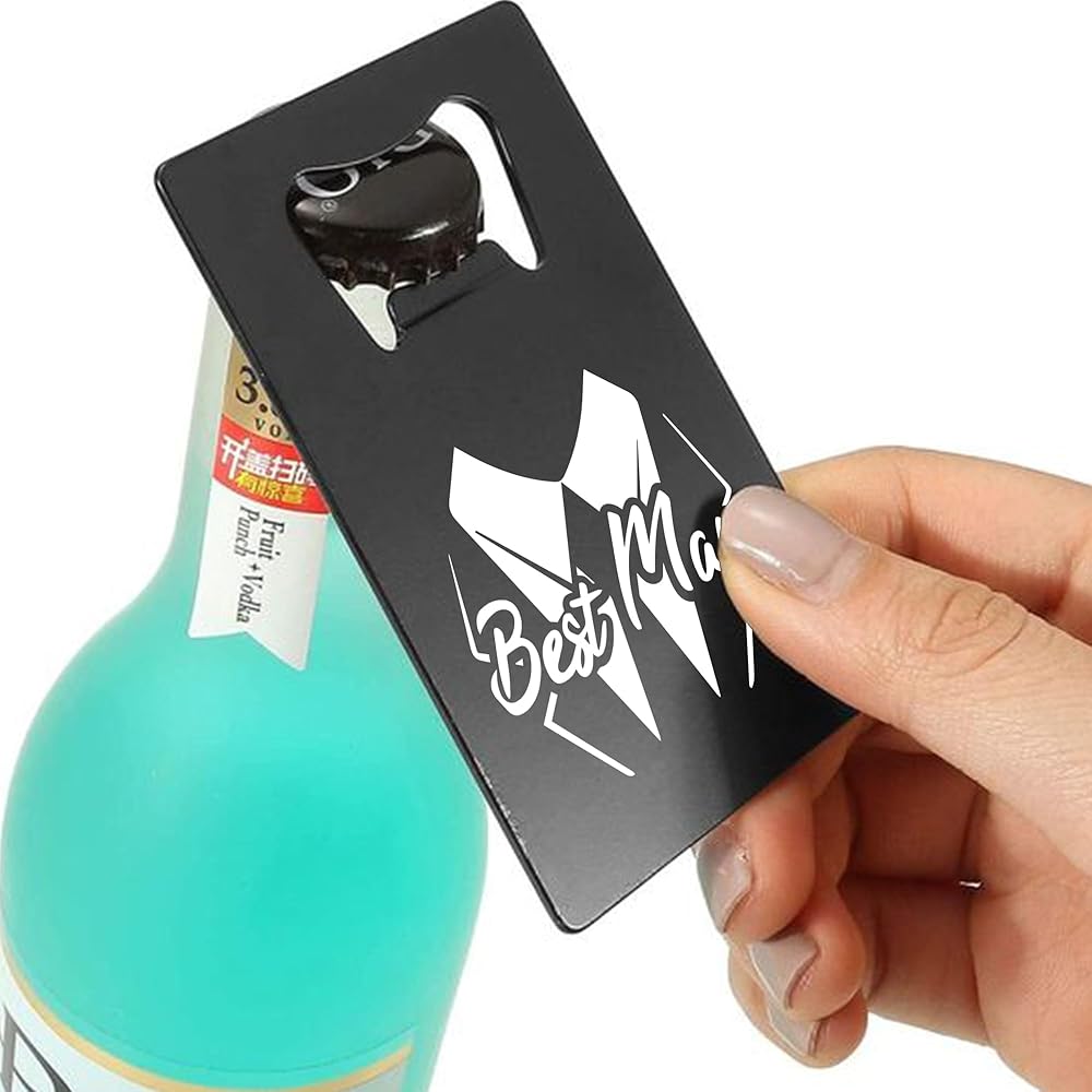 【Metal Card Bottle Opener】Credit Card Bottle Opener, a fun novelty piece is small but powerful and is durable enough to tackle any bottle cap. Easily open your bottles. Slim style easily fits in your pocket, great for Parties & BBQs & Traveling & as a gift. No serrated edges, The surface has a bit of a texture so finger prints don't jump out at you. It's also a great Groomsmen Gifts