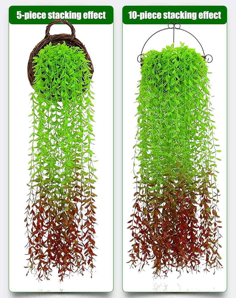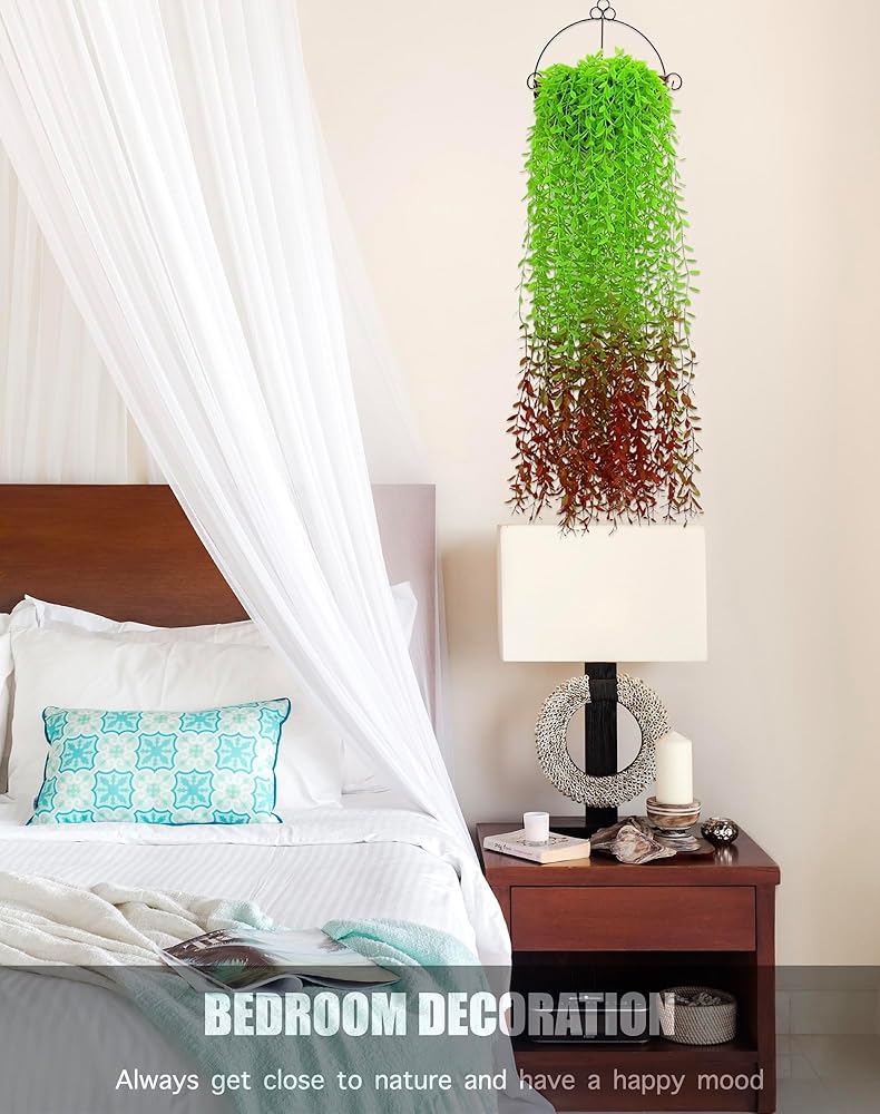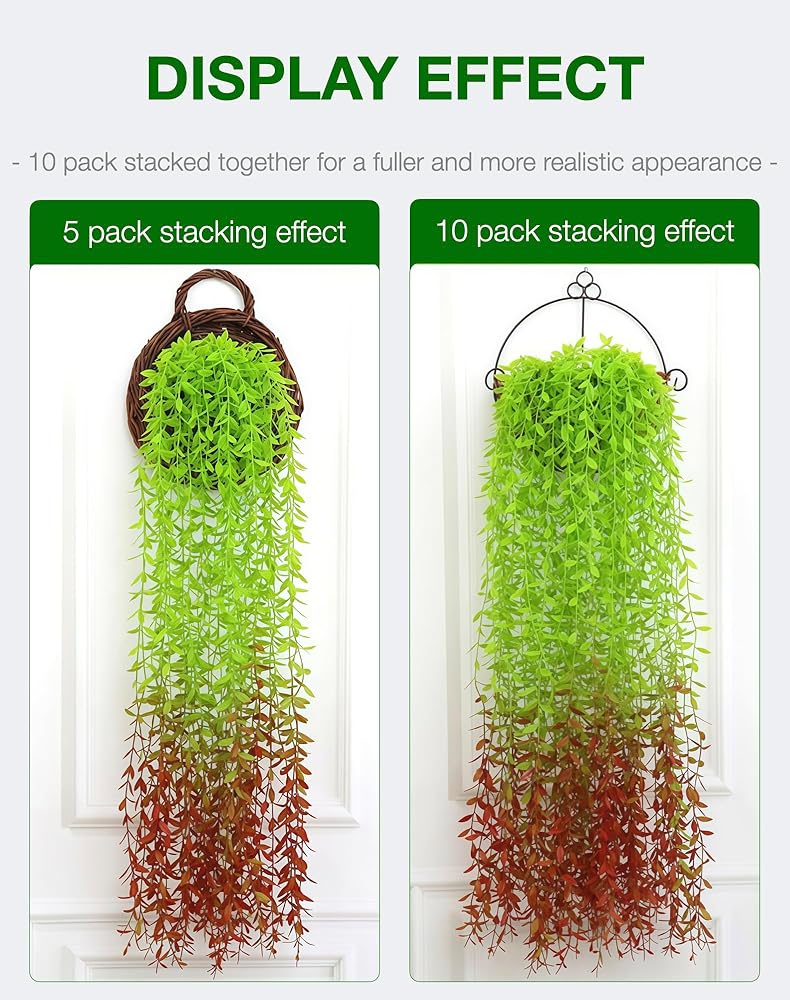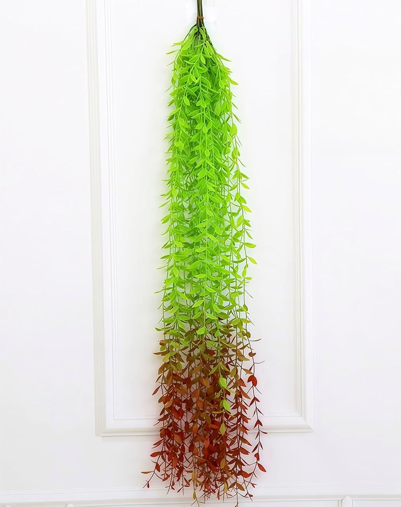 IN the BOX: 1 packs of artificial hanging plants, containing five 3.3 foot long fake willow vines, used for interior and exterior decoration, wedding decoration, or photography props.