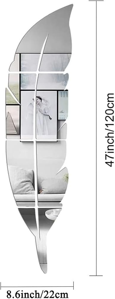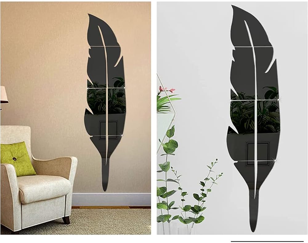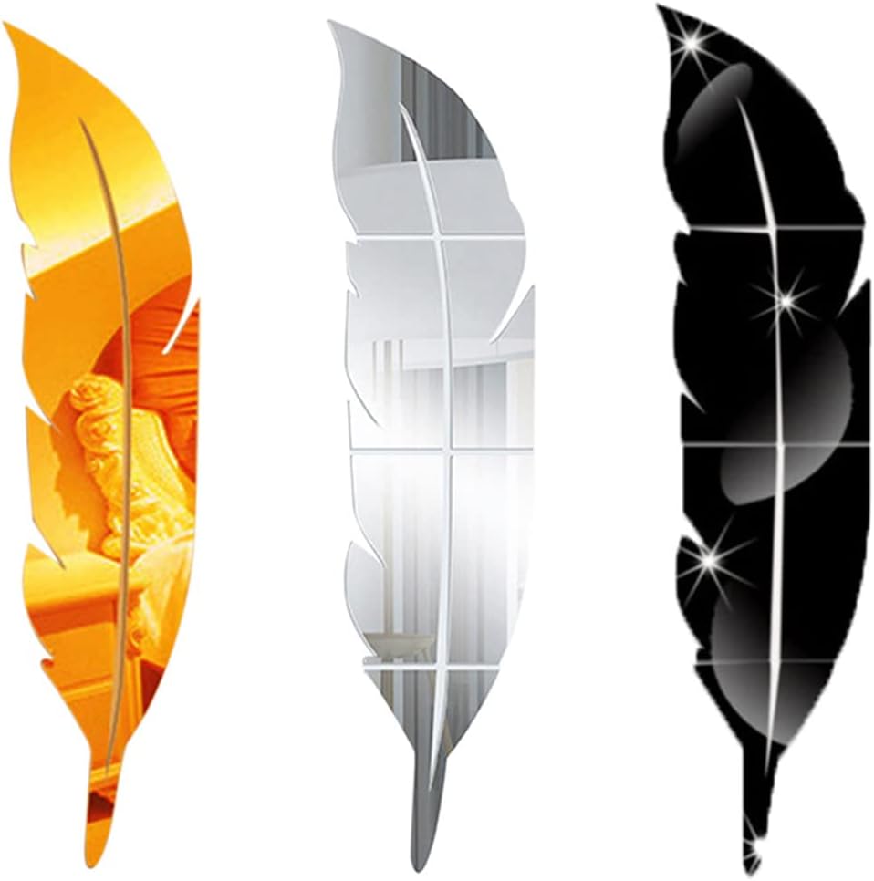 💖 Feather shaped self-adhesive home decoration mirror wall stickers.