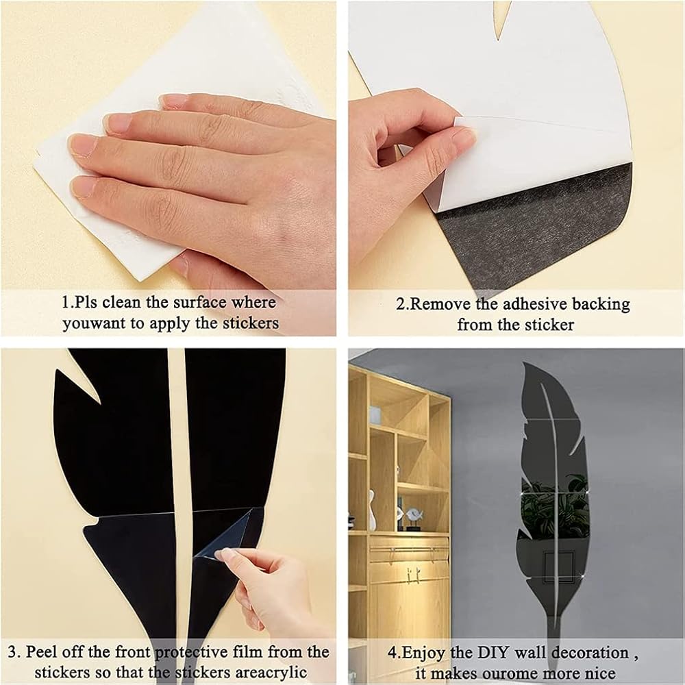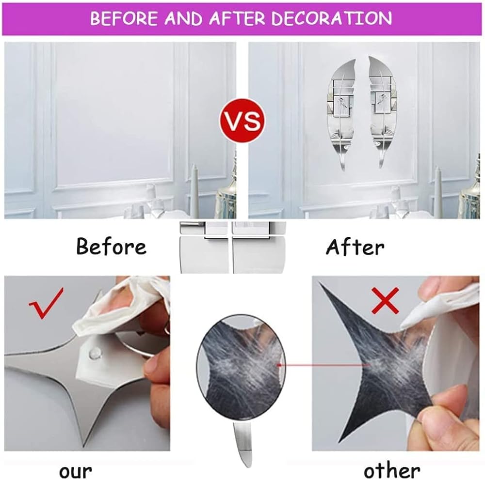 Package includes: 1 set feather mirror stickers
