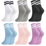 Classic and Stylish Design: These quarter socks women feature a solid color with double stripe accents, combining a modern and classic aesthetic. The set includes 6 pairs of white socks, making them versatile and easy to match with any outfit, whether casual or sporty