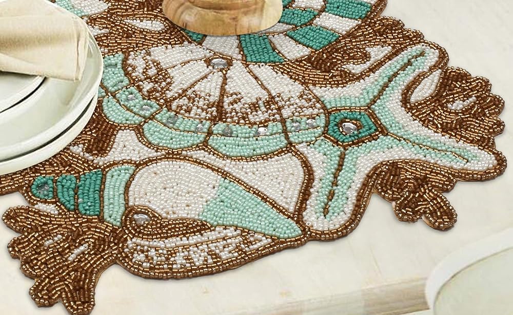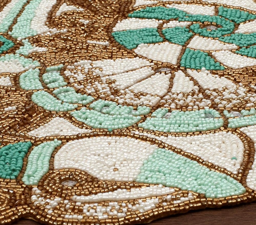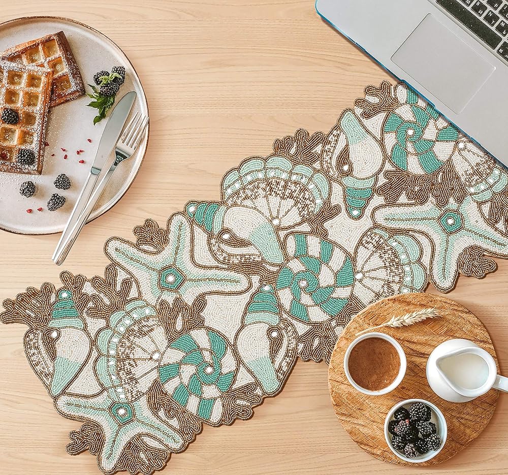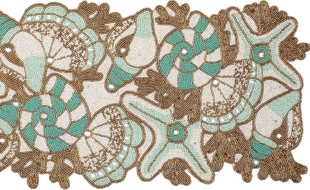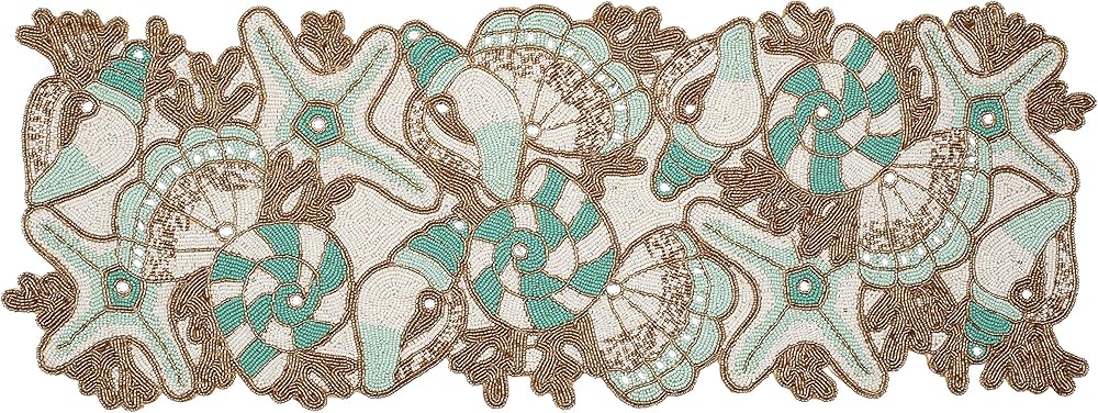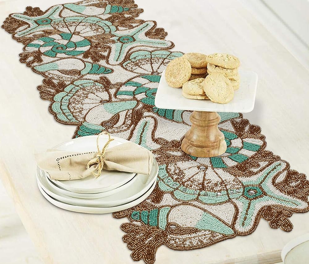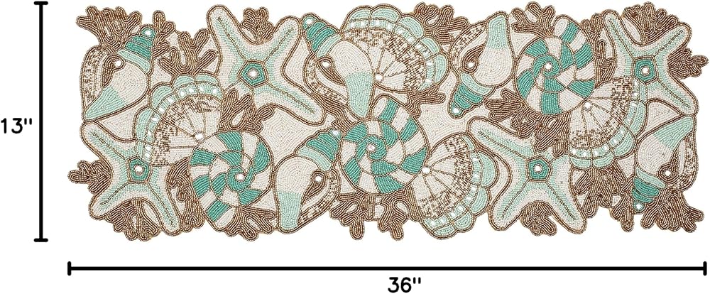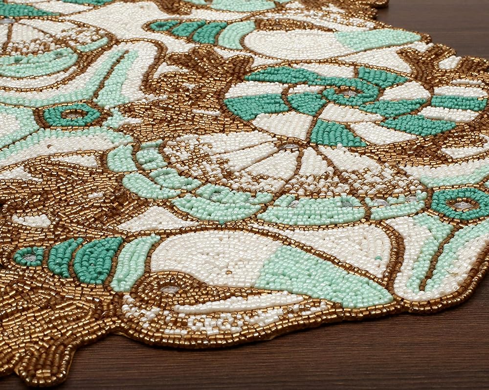 CONTENTS: One Beaded Table Runner - 85% Glass Beads 15% Polyester -13X36 Inch. SPOT CLEAN ONLY WITH CLOTH