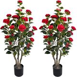 1. **Realistic and Elegant Design**: Elevate your indoor or outdoor decor with the Alonfale 3.4ft Artificial Camellia Tree. Featuring vibrant red flowers and lush green leaves, this faux floral plant adds a touch of natural beauty to any space.