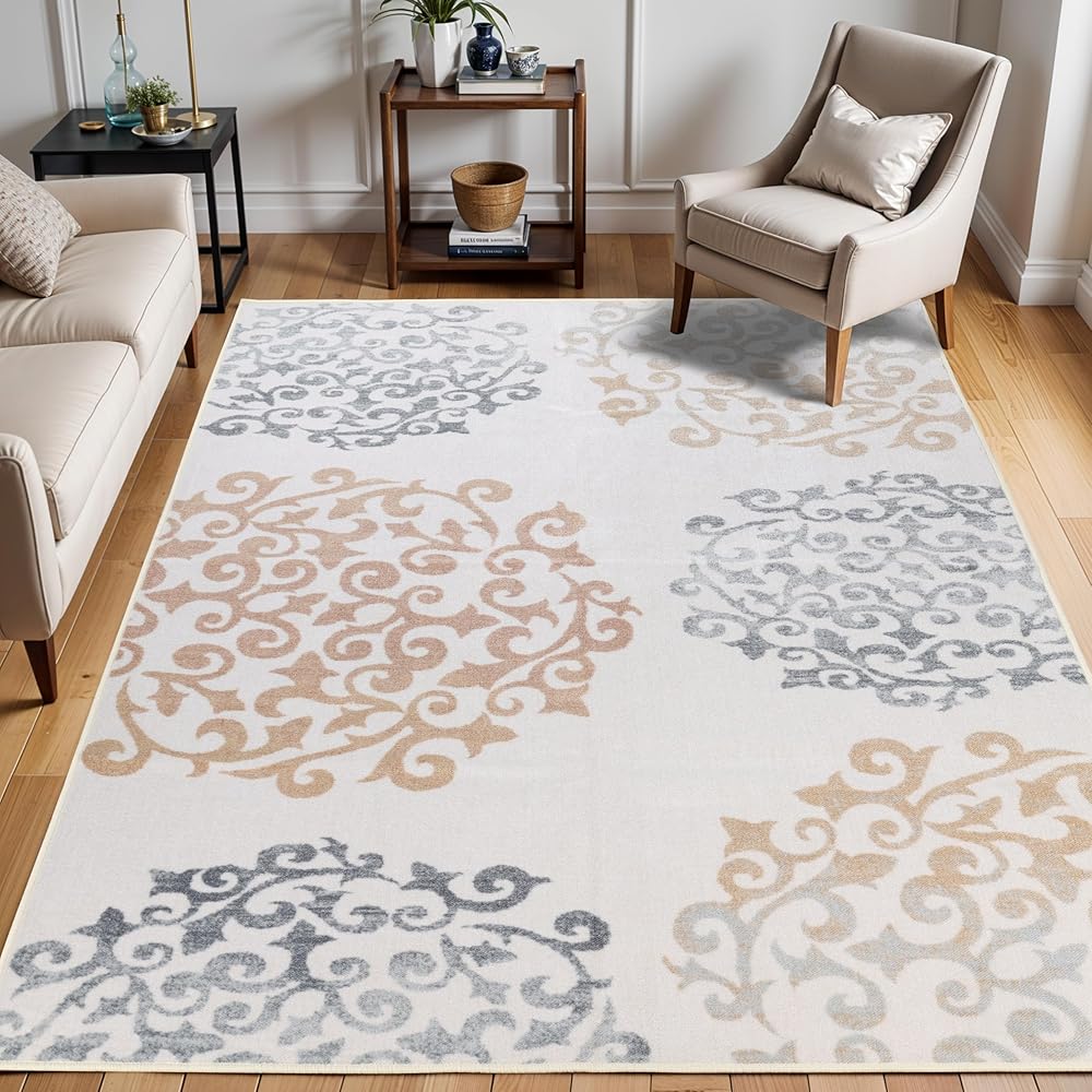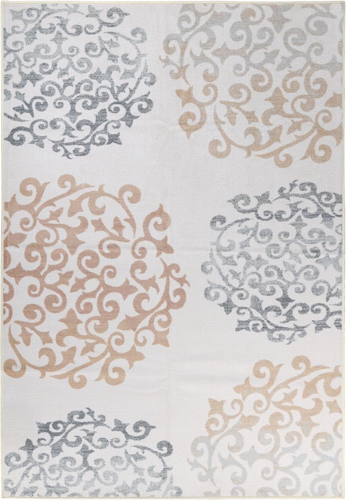 Superior Indoor Non-Slip Area Rug, Floral Home Floor Decor for Bedroom, Living Room, Dining Room, Entryway, Kitchen, Office, Machine Washable Rugs, Amber Collection, 5' x 8', Ivory