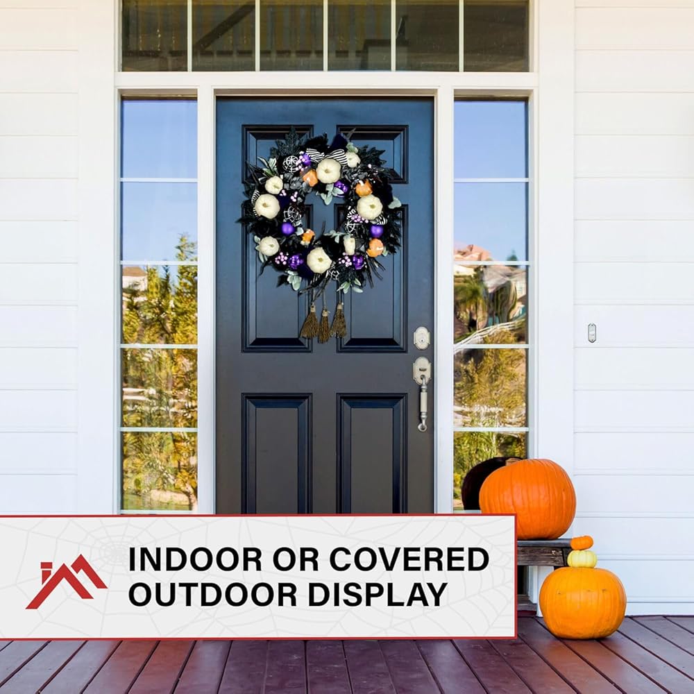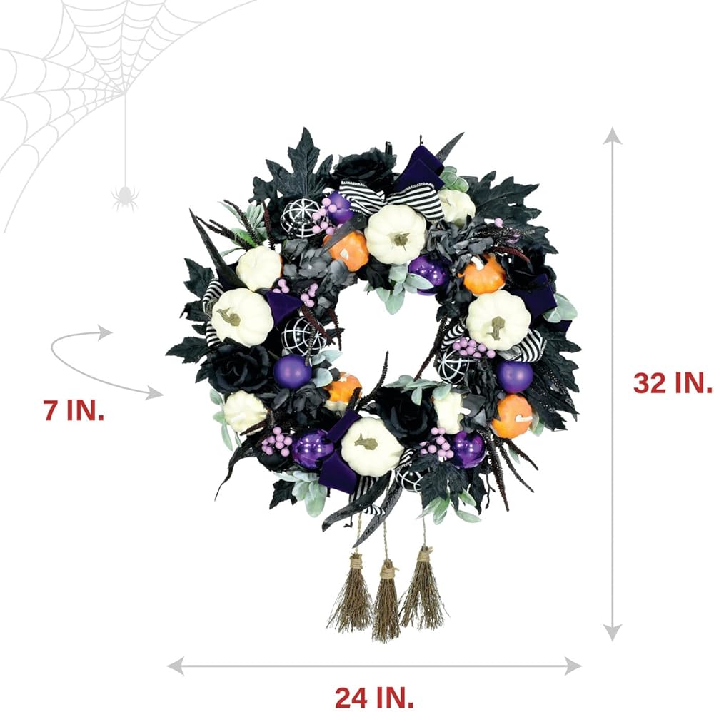 Conveniently Sized: Measuring 24 inches in diameter, this Halloween wreath is the perfect size for your doors, walls, windows, or any place you want to add seasonal whimsy