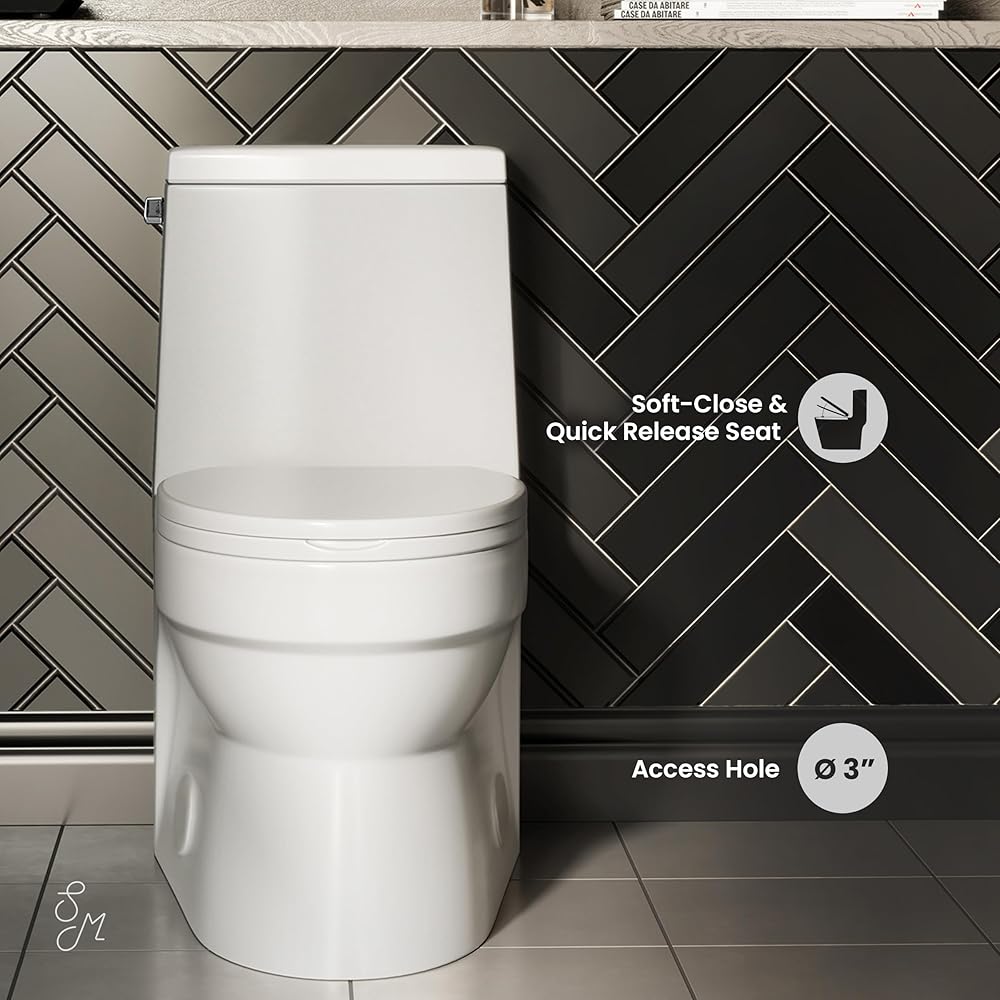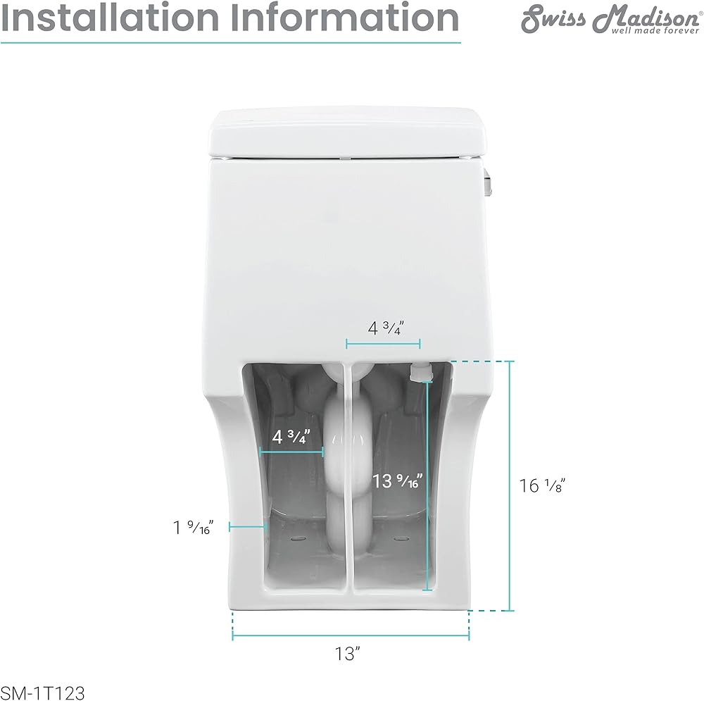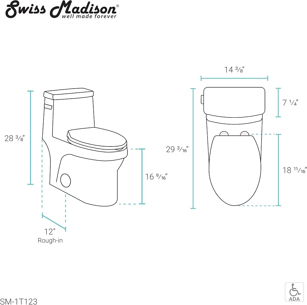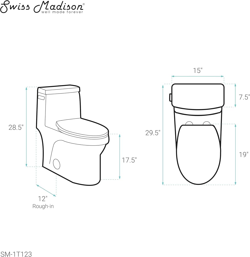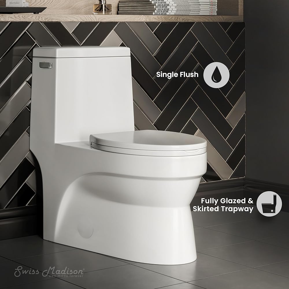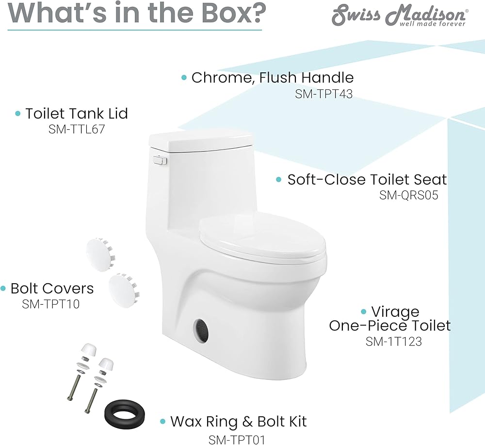 Swiss Madison SM-1T123 Virage One Piece Toilet, Modern Toilets For Bathrooms, ADA Toilet, Elongated Left Side Flush Handle Toilet 1.28 GPF, Glossy White