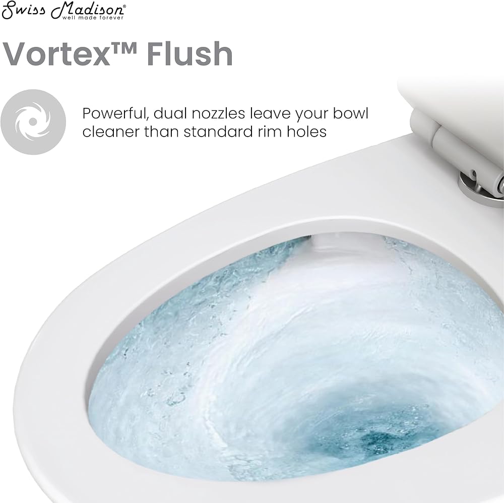 Fully Glazed And Skirted Trapway: The Skirted Trapway Offers Hidden Plumbing Creating An Elevated And Luxurious Design With A Smooth Finish For Easy Cleaning. The Fully Glazed Trapway Prevents Clogs And Keeps Water Flowing Freely.