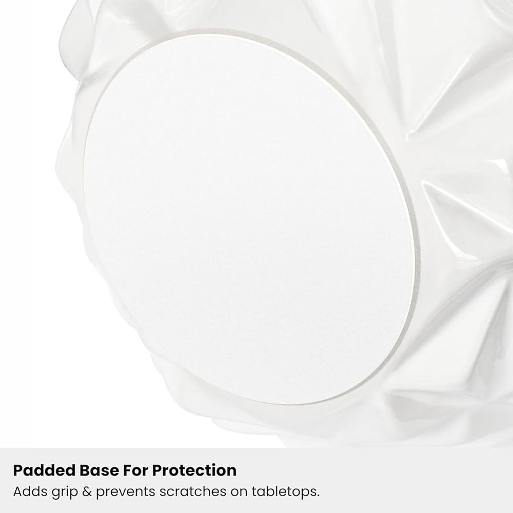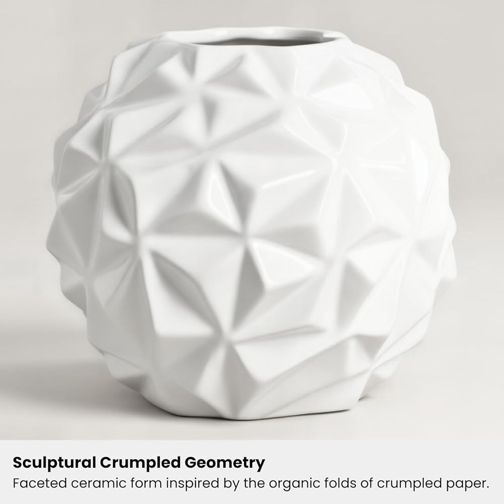 Torre & Tagus Faceted White Round Vase Home Decor - 6" Ceramic Round White Vase for Flowers & Entryway Sculpture, Dining Table Centerpiece, or Wedding Decor Gift (Crumple)