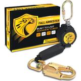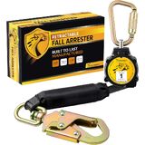 SELF LOCKING SNAP HOOK:The fall restraint system for roof climbers boasts hefty steel snap hooks that resist rust and create a sturdy link with your other safety gear, such as harnesses and anchors with D-rings. Its ingenious spring and lock switch lets workers use the rope more effectively while on the job. The retractable hooks lock by themselves, holding up to a minimum of 5,000 pounds and a gate rating of 3,600 pounds.