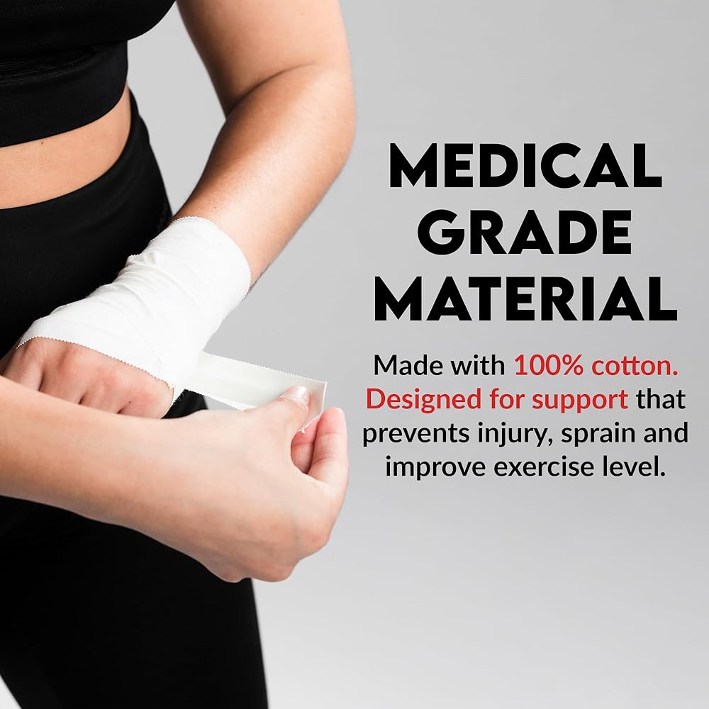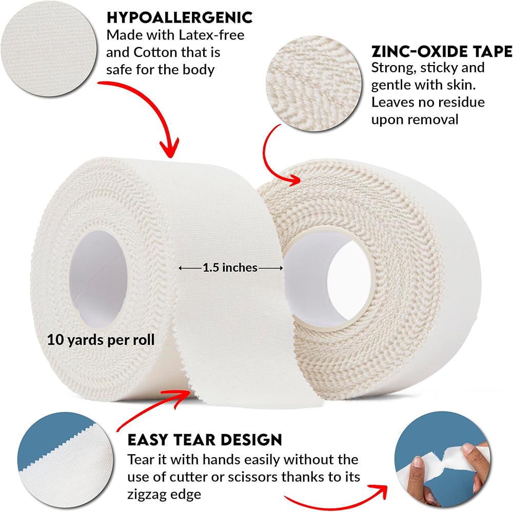 500 Yards Bulk Athletic Tape: Each sports tape wrap roll is 1.5 in x 10yds (Total 500 yds) of latex free, cotton with infused zinc-oxide tape. Designed for support and mobility, it's the perfect sports tape for injury support, to prewrap fingers & wrists and more.
