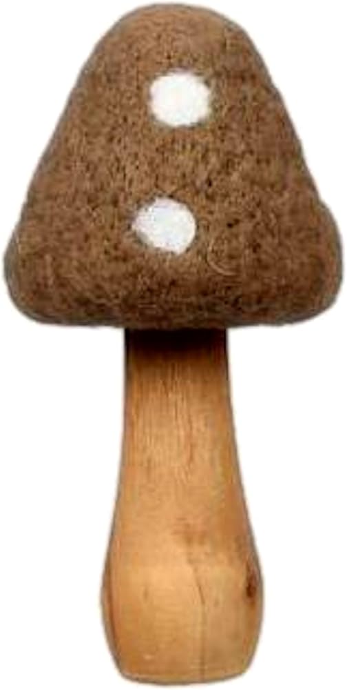 This lovely set of mushroom figurines for home decor is the perfect accessory for your garden decor! Crafted from wool and wood in detail of a set of brown, orange,and grey topped mushrooms with white spots on wooden stems, this vintage mushroom decor looks great in a living room, bedroom, camper, or family room. Both unique and stylish, this toadstool figures set makes a great decor accent that fits with a variety of decorating styles: garden, cottage, country, vintage, and more. The mushrooms measure 2.75"L x 2.75"W x 5.5"H (individually).