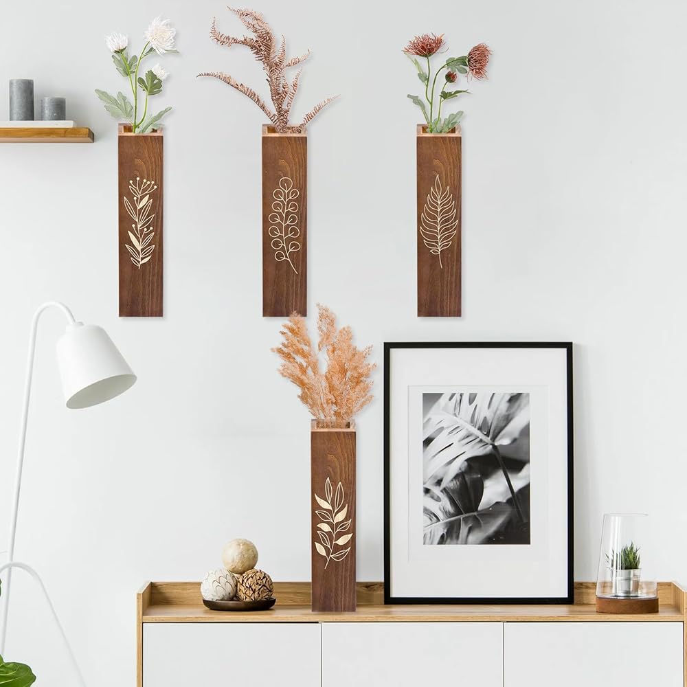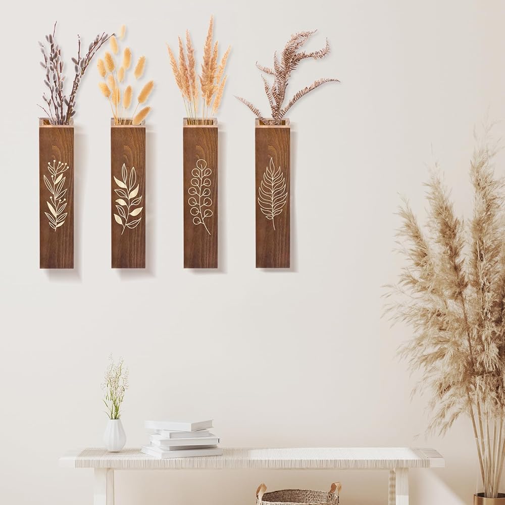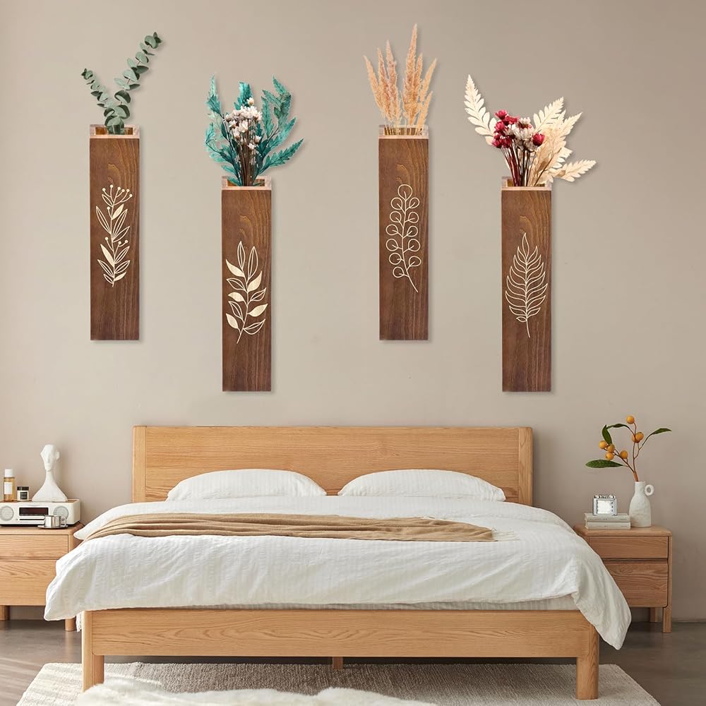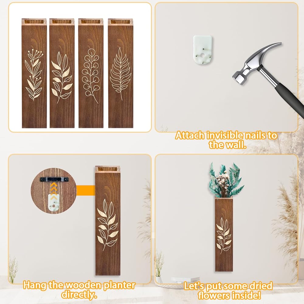 ✿Package Included: You will get 4 wood wall planters. Each planter measures approximately 11.81 x 2.75 x 1.57 inches/30 x 7 x 4 cm. It is not meant to hold water, you can use it to display artificial greenery, artificial flowers, seasonal decorations, shrub bouquets, foliage, fake lavender, eucalyptus plants or cotton. (Note: The package does not include green plants and other decorations)