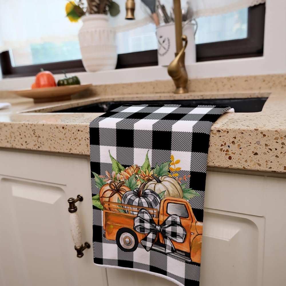 ARKENY Fall Kitchen Towels for Fall Decor,Pumpkin Truck Buffalo Plaid Autumn Dish Towels 18x26 Inch Set of 4,Farmhouse Home Thanksgiving Harvest Vintage Decorations AD370