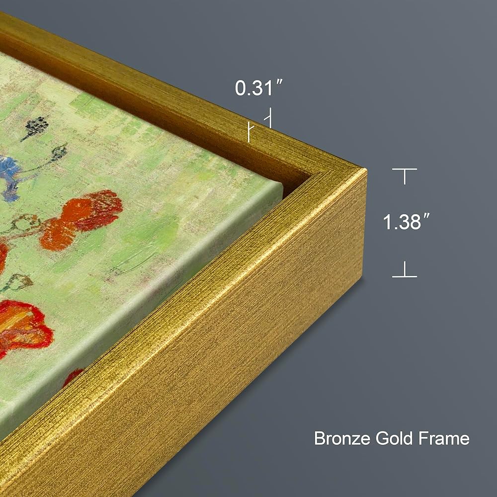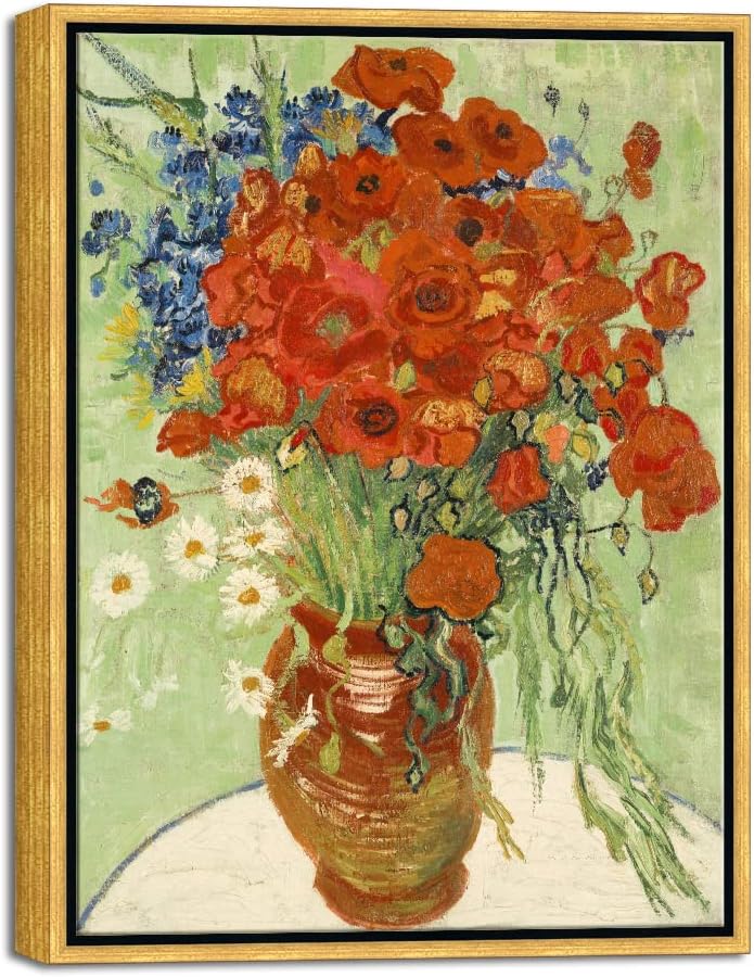Wieco Art Framed Wall Art of Red Poppies and Daisies by Vincent Van Gogh Paintings Reproduction Abstract Canvas Prints for Home Living Room Decorations Bronze Gold Frame