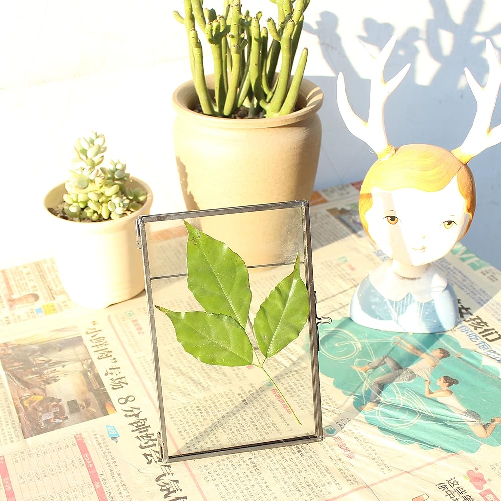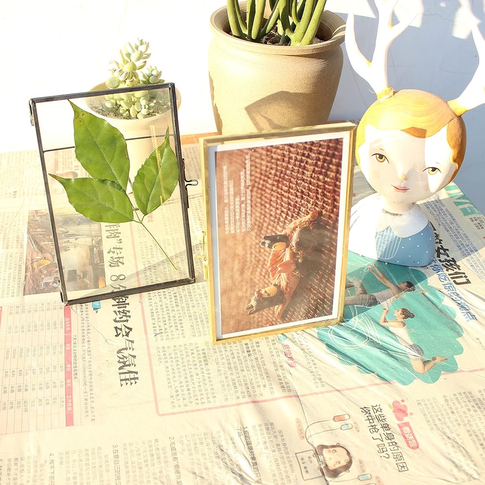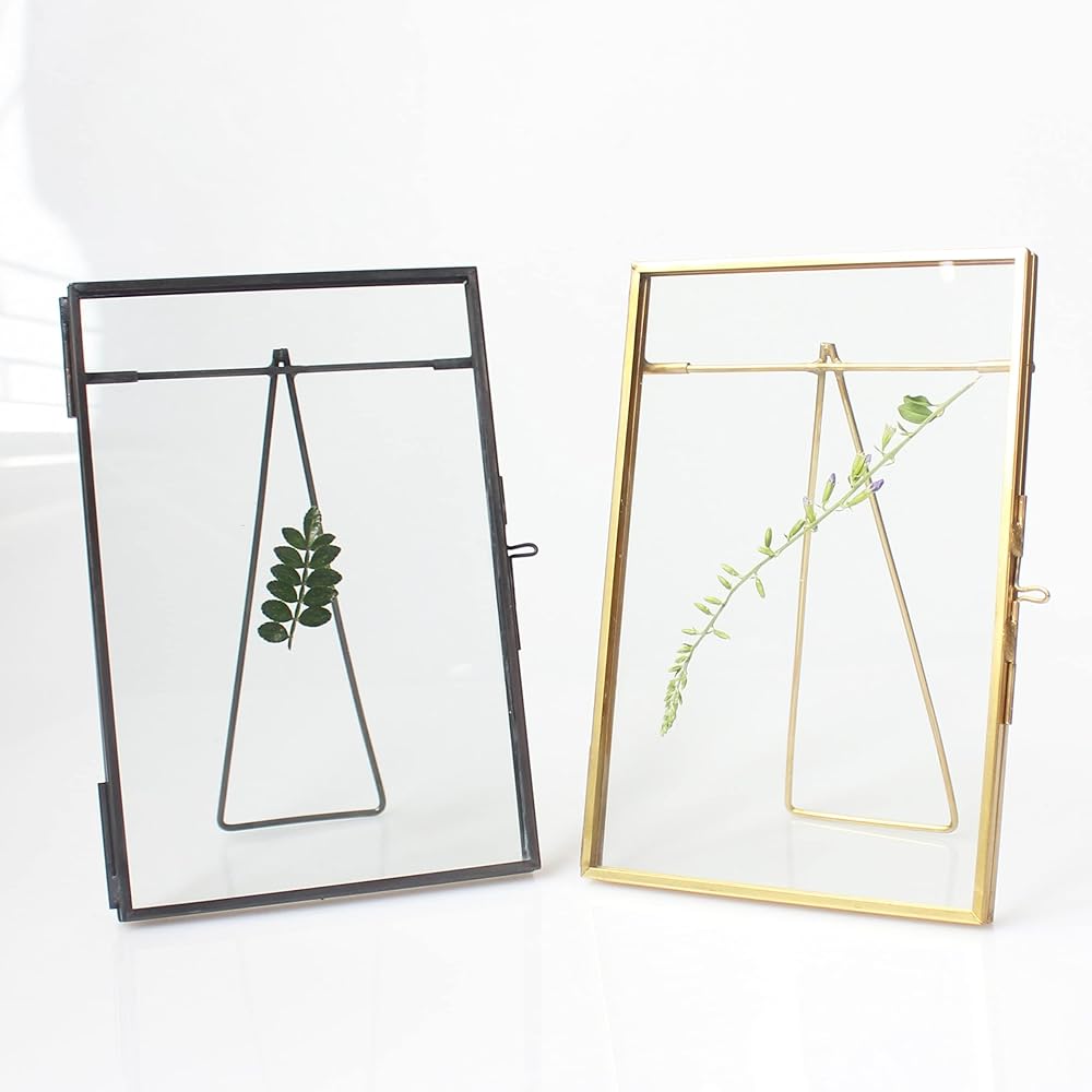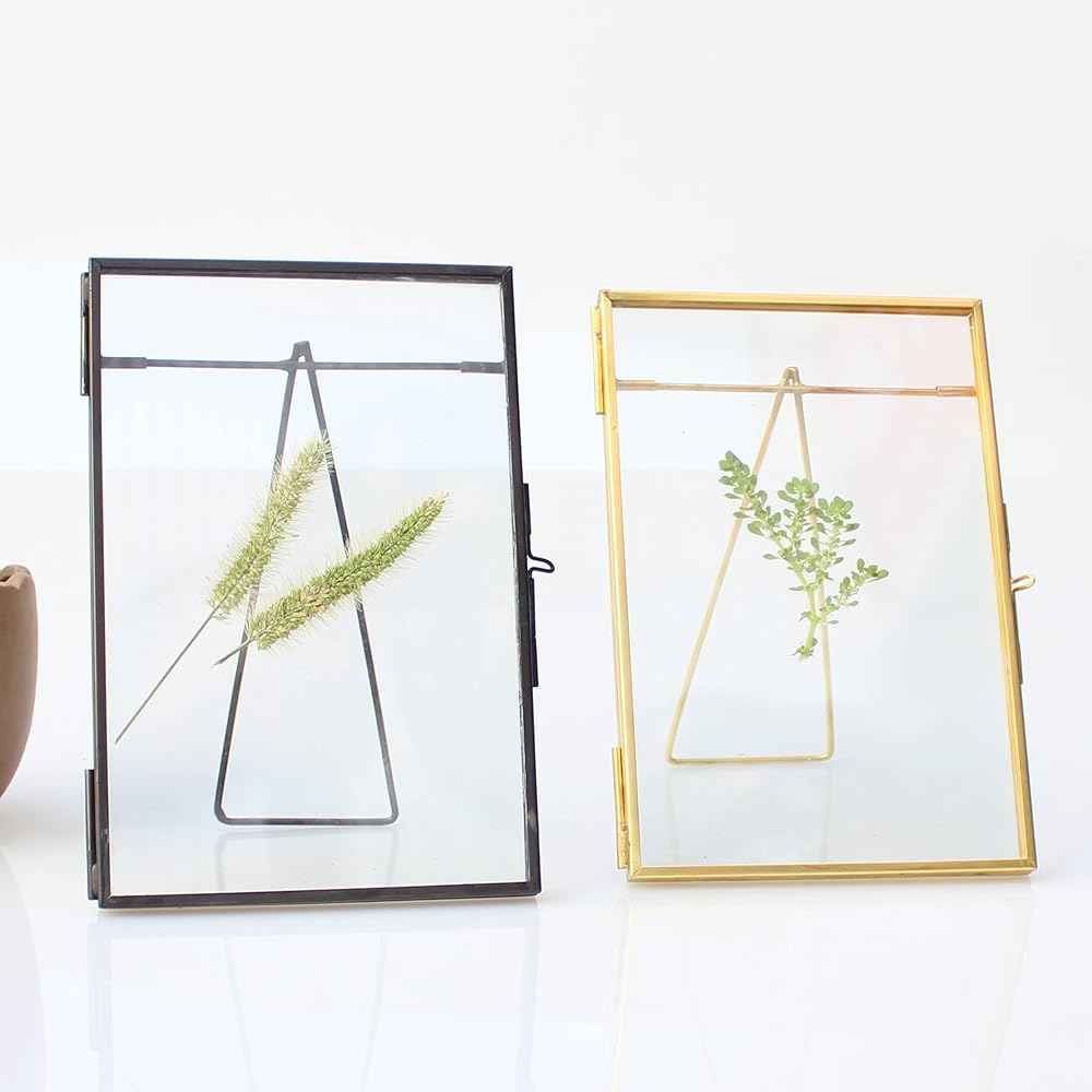 Glass floating pressed flower frame handmades with brass and double glass.It is a great home decor piece for any room.