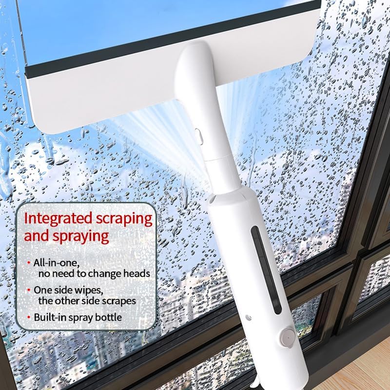 【Squeegee for Window Cleaning with Spray】Experience crystal clear windows with our mist retractable window cleaner. With spray, scrape, and wipe three all in one, this innovative cleaning tool combines the convenience of a squeegee with the effectiveness of a sprayer, saying goodbye to stains, streaks, and dirt, making it a must-have for every household.