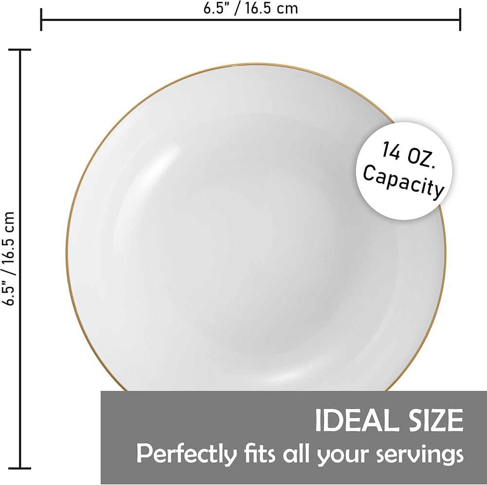 Crafted for Quality:While it's a disposable option, the plastic used in this bowl is of premium quality. This carefully selected material closely replicates the look and feel of real glass or fine china, ensuring your guests experience luxury without the fragility.