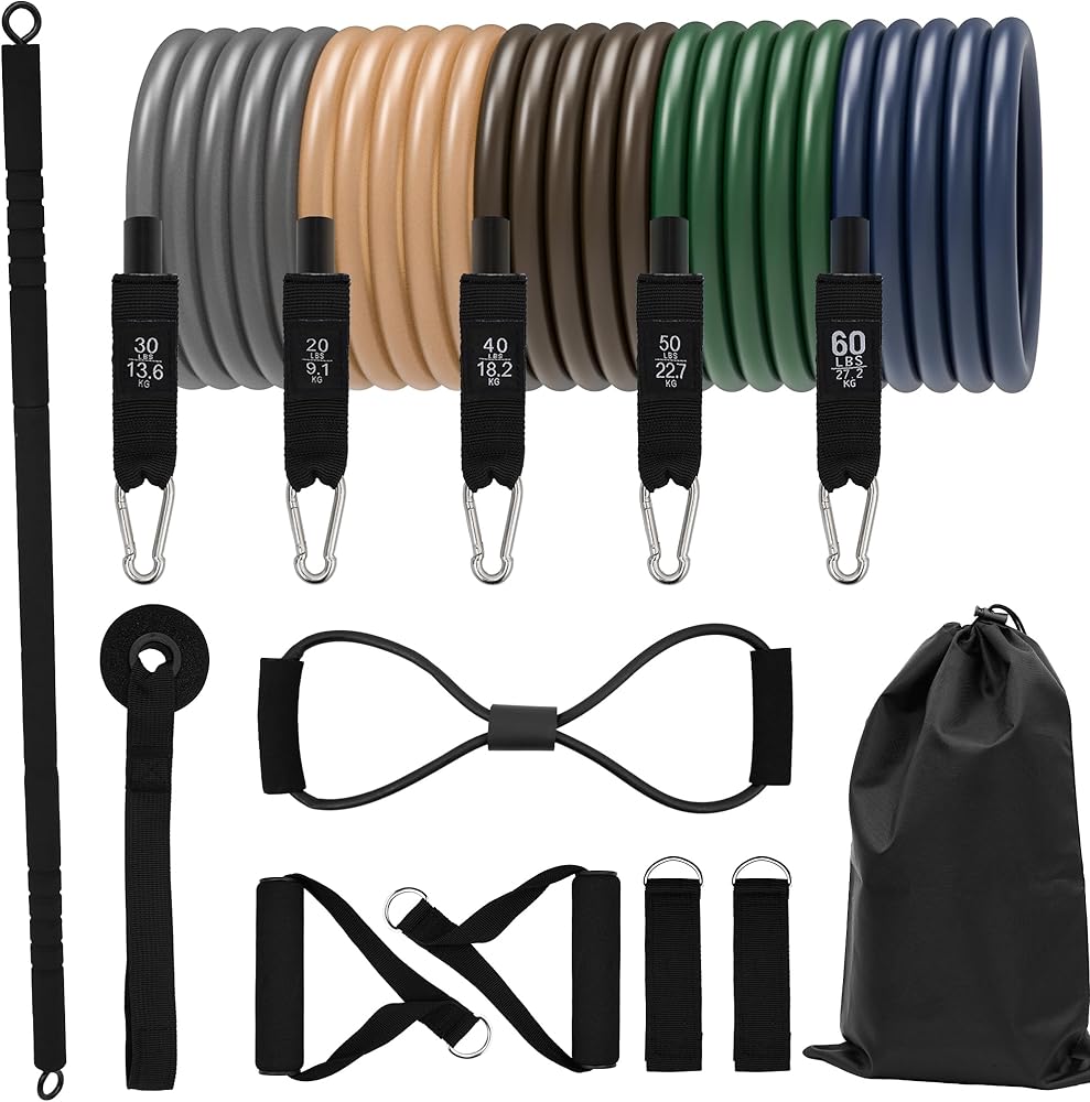 Workout Band & Bar Kit: Our portable resistance band bar set includes 3 sections of premium stainless steel pipe(need to assemble),5 pull-up resistance bands, 1 door anchor, 1 carrying bag, 2 resistance band handles, 2 soft padded foot straps, training guide, and 1 storage box