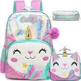 [Kids Backpack Size]backpack:16.5"x11.8"x7.8",lunch bag:9"x8.2"x3.9",pencil case:9".Plush love pendant is included.Multi-function for kids,as a luggage to reduce load,or as a backpack,or a handbag with a handle on the top of backpack.