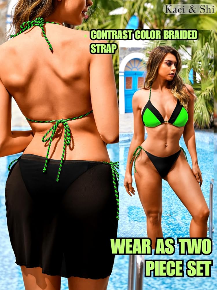 A: It comes with 1 bikini set and 1 coverup skirt.