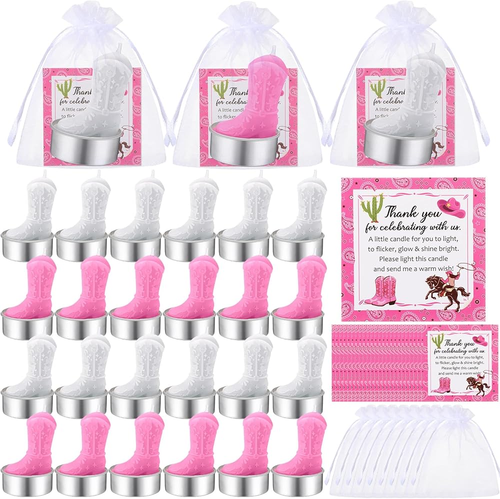Our cowgirl cowboy boot tealight candle party favors set is a proper gift for any fun filled gathering. Practical yet decorative, they do more than just light up a room, they add a heartwarming touch to it, turning ordinary days into memorable ones.