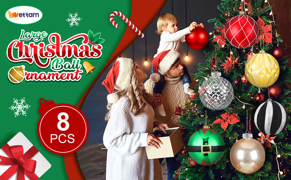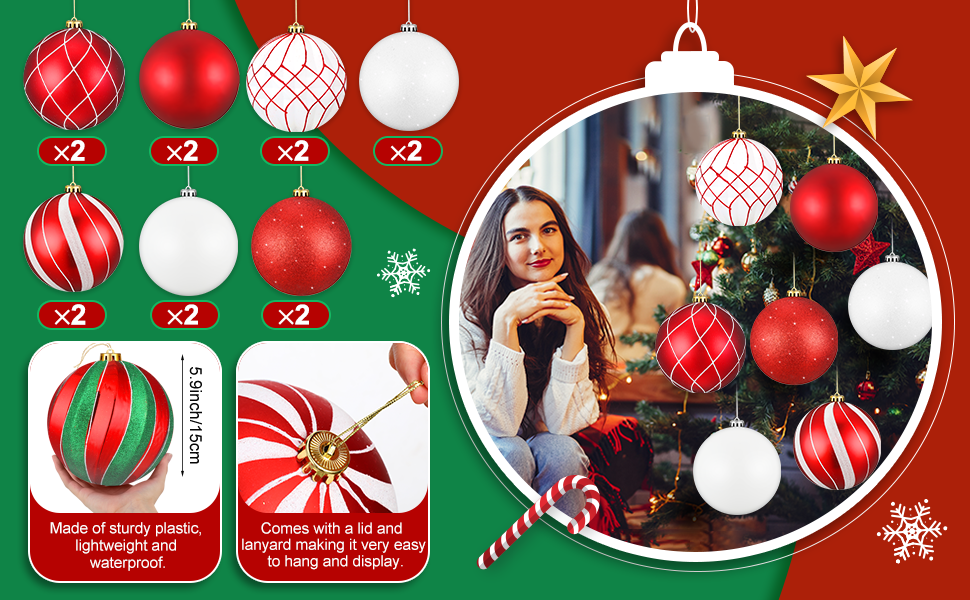 Eye Catching Large Size: you will receive 8 pcs Christmas ball ornaments, abundant to meet your various decorative demands; Each measures about 6 inches in diameter, large enough to easily attract your eyes
