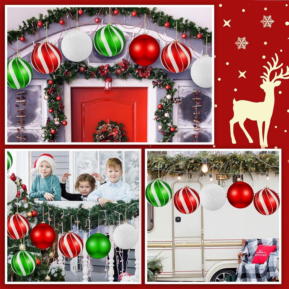Versatile for Indoor and Outdoor: our giant Christmas ball ornaments are not limited to Christmas trees alone; They can be applied in various settings, including lawns, yards, parties, garden, indoor spaces, and even as a part of larger outdoor Christmas displays; Their versatility allows you to get creative and bring the holiday spirit to every corner of your home