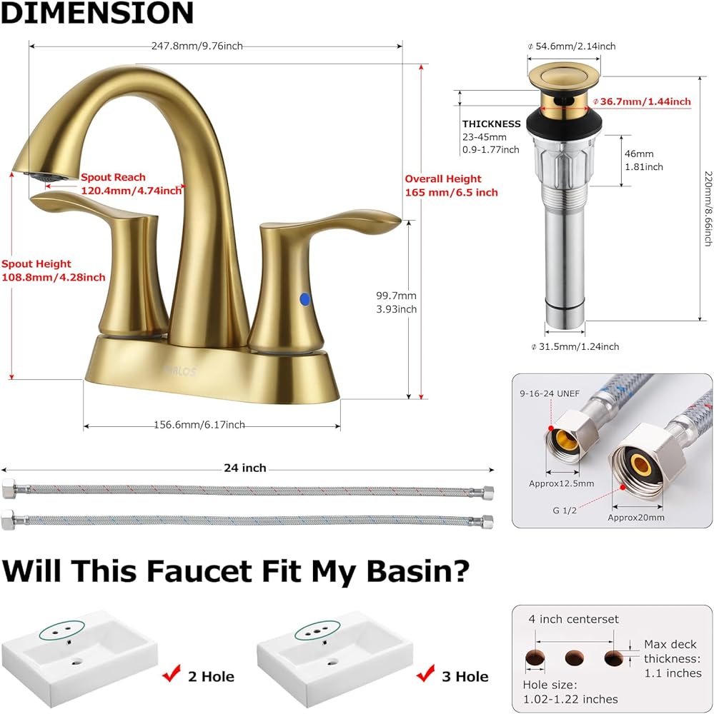 The bathroom sink faucet set include solid metal Pop-up drain assembly and cUPC certified water supply lines.(NOTE: The Pop-up drain only fits bathroom sink with overflow hole)