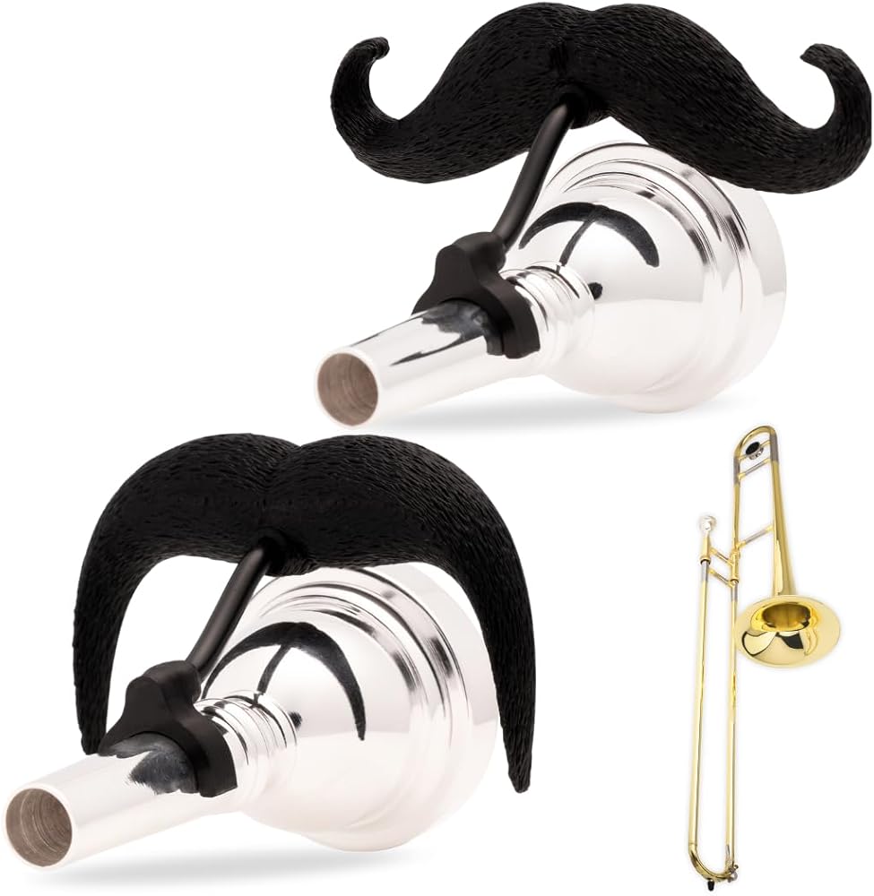 Brasstache 2.0 Combo Pack - [2-Pack] The Original Clip-on Mustache for Brass Instrument Mouthpieces, XL and Handlebar Combo Version (Trombone or Baritone Small Shank)